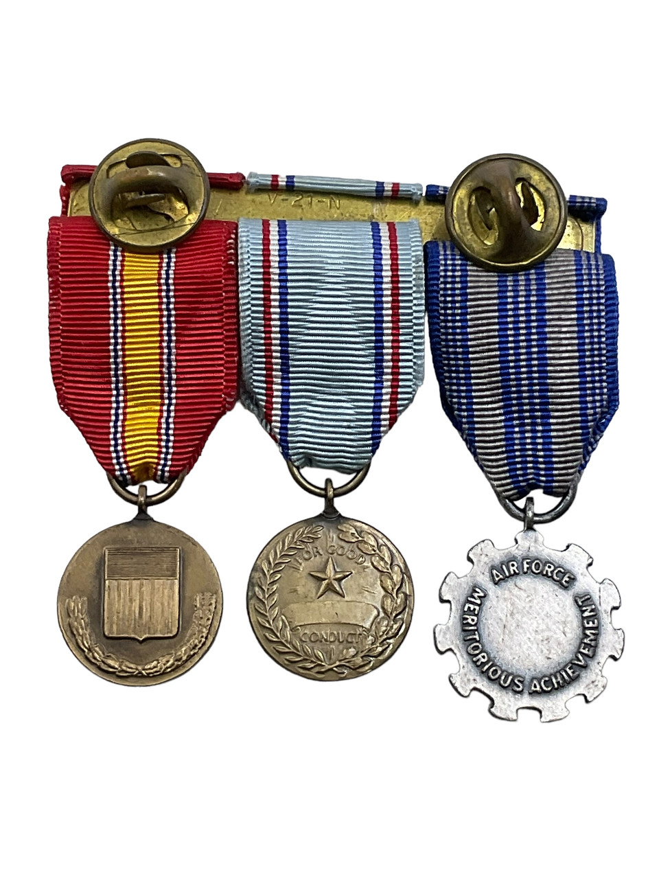 This unique set, titled ‘US USAF Miniature Medal Group X 3,’ features a trio of exquisite miniature medals representing distinguished service in the United States Air Force. Each medal in this collection holds significant historical and commemorative value, meticulously crafted to honor the valor, dedication, and achievements of Air Force personnel. Perfect for military memorabilia collectors, veterans, or history enthusiasts, these miniature medals echo the grandeur of their full-sized counterparts while offering a compact, display-friendly alternative. Their intricate designs and high-quality craftsmanship ensure they stand out in any collection or exhibition. This set serves as a poignant reminder of the sacrifices and outstanding contributions made by members of the USAF in service to their country. Whether you’re adding to a collection or seeking a thoughtful gift, the ‘US USAF Miniature Medal Group X 3’ is a noteworthy choice that encapsulates a deep respect for military service and heritage.