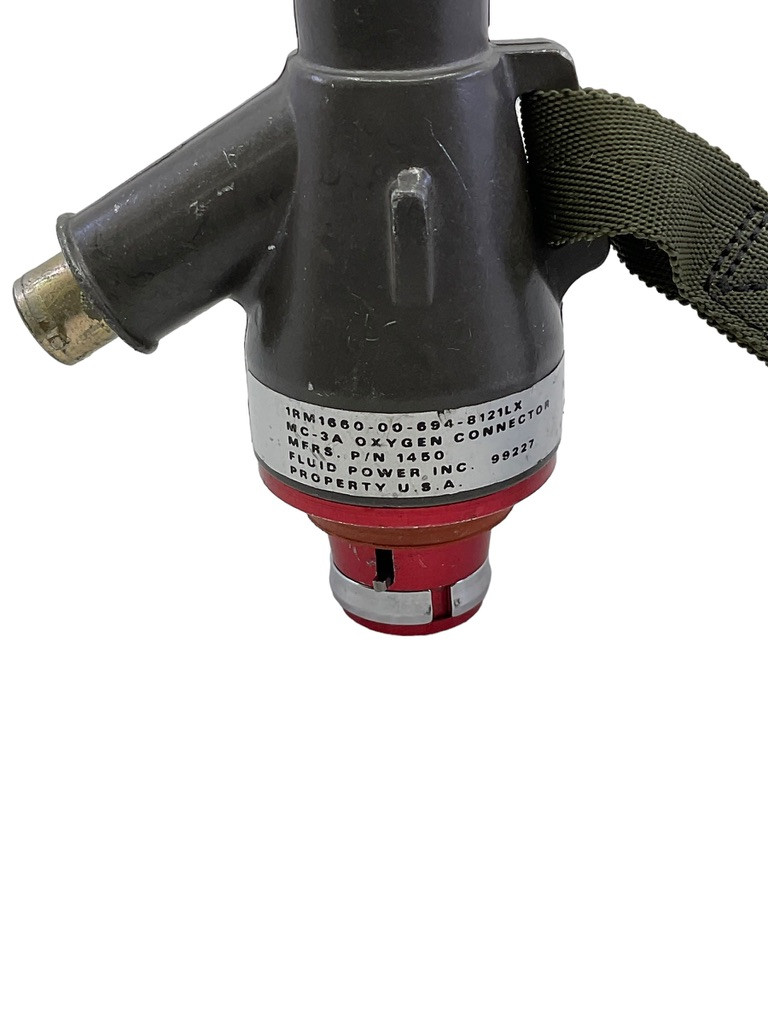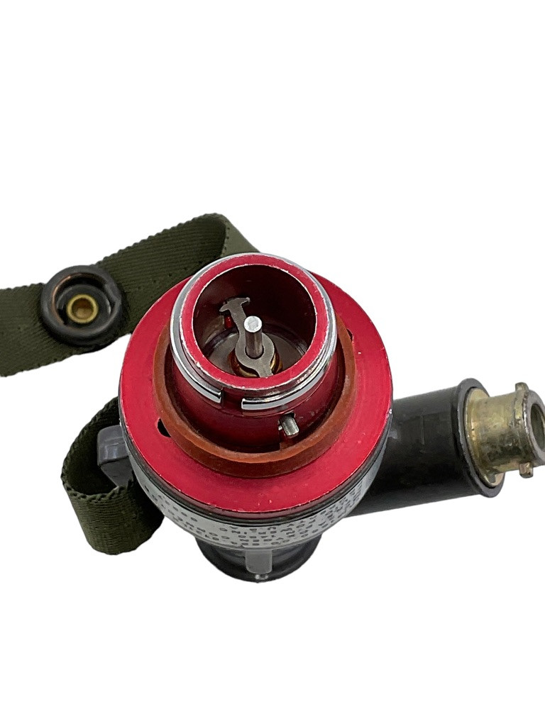 The US USAF Oxygen Mask Connector MC-3A is a specialized component designed for compatibility with United States Air Force helmet and oxygen mask systems. Engineered to ensure secure and reliable connections between oxygen delivery systems and respiratory masks, the MC-3A is critical for maintaining life-support functions in high-altitude flight operations. This oxygen mask connector is made from durable, high-quality materials to withstand the rigorous demands of military aviation. Its precision design allows for quick and secure attachment, ensuring that pilots and aircrew can trust the performance and integrity of their oxygen supply under extreme conditions. The MC-3A is an essential piece of equipment for optimal respiratory protection and operational efficiency, contributing to the safety and effectiveness of USAF personnel during complex mission profiles. Ideal for both training and combat scenarios, this connector exemplifies the high standards of reliability and functionality required by modern military aviation.