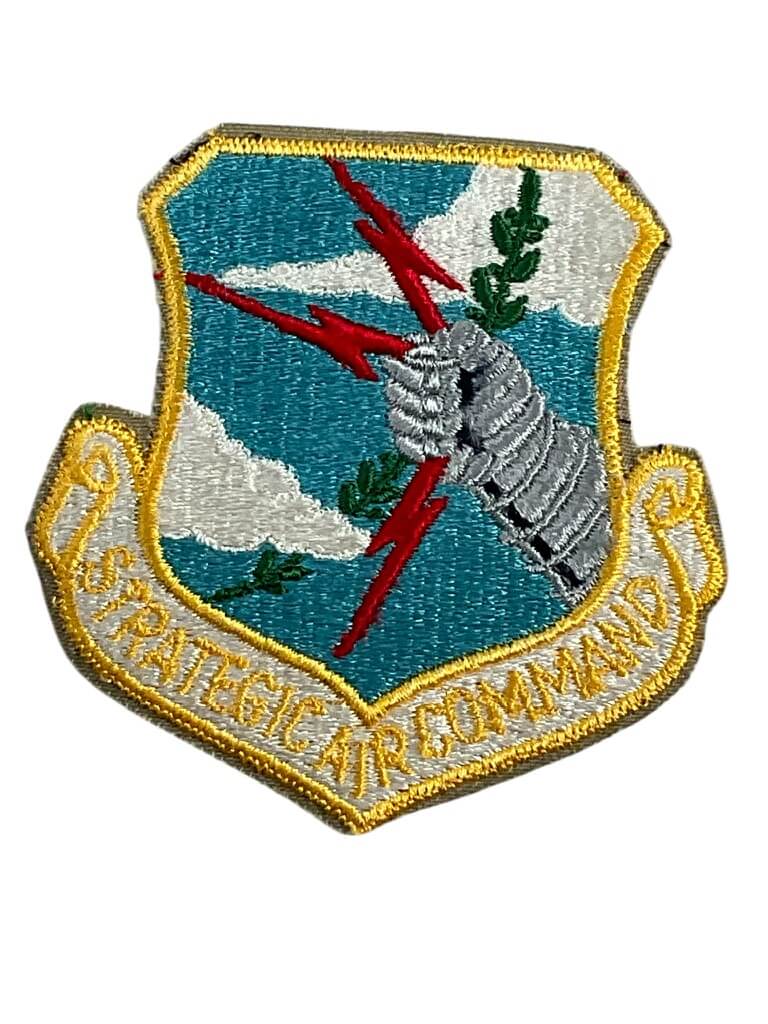 The US USAF Strategic Air Command Patch is an embroidered insignia representing the United States Air Force’s Strategic Air Command (SAC). Established in 1946, SAC played a central role in America’s nuclear deterrence and strategic bomber operations during the Cold War. The patch features the iconic SAC shield, characterized by a mailed fist clutching lightning bolts against a blue sky, symbolizing both strength and rapid response. Clouds and a sky-blue background reference the Air Force’s operational domain. The colors and design elements adhere to official USAF heraldic guidelines. This patch was typically worn on uniforms by personnel assigned to SAC from its inception through its disestablishment in 1992. It serves as a historical artifact reflecting strategic military heritage and unit identity within the USAF. The patch’s size, stitching techniques, and color variations may differ slightly based on production era and contract manufacturer. This item provides tangible insight into U.S. military organizational history.