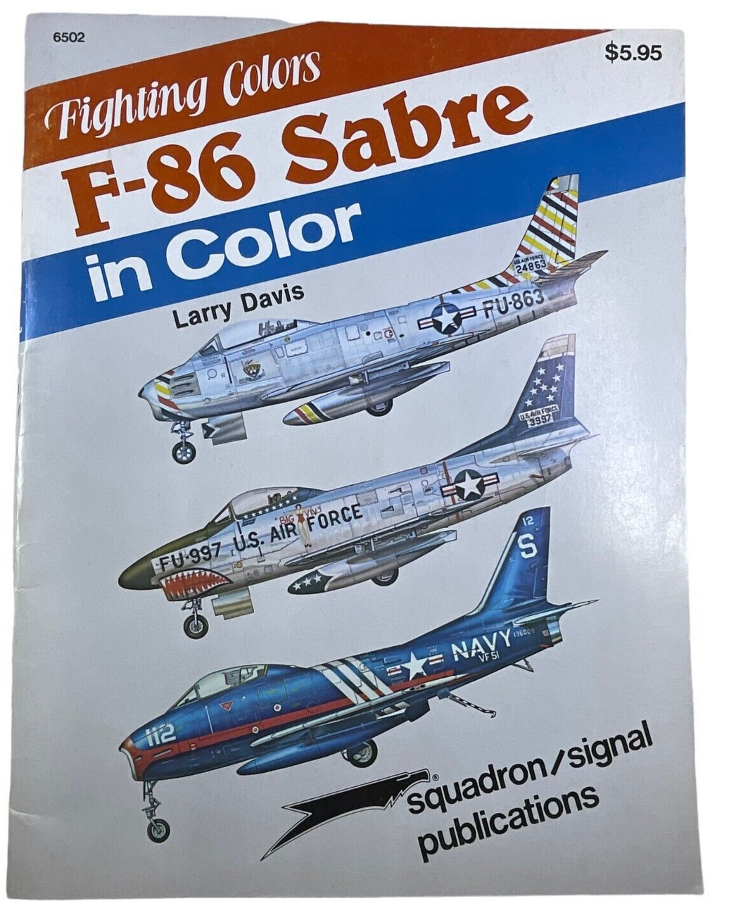 This is a used softcover US USF USN F-86 Sabre Squadron Signal Fighting Colors Reference Book. Total of 32 pages with lots of pictures and information.