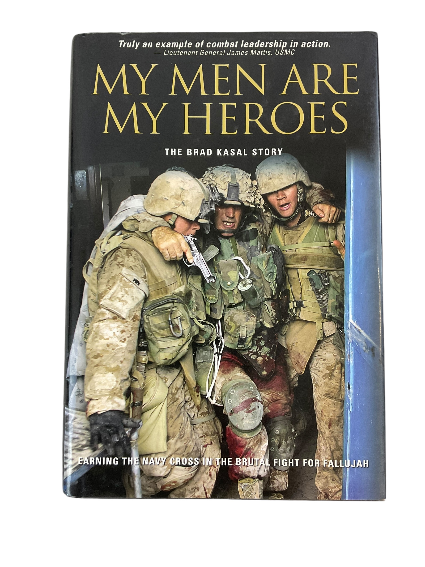 This is a used hardcover US USMC My Men Are My Heroes The Brad Kasal Story Reference Book. Total of 287 pages with lots of pictures and information.