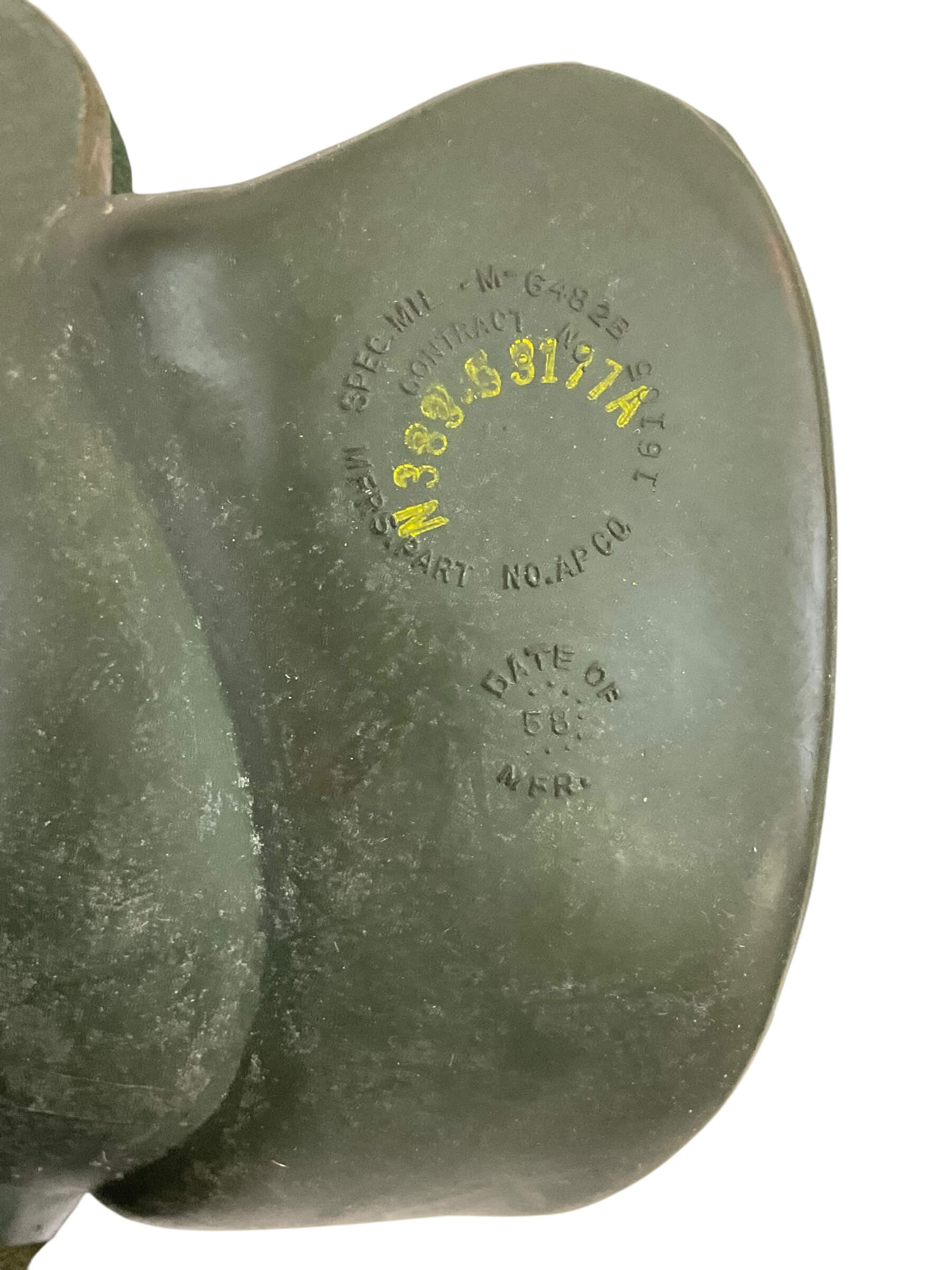 The ‘US USN MS22001 Oxygen Mask 1958 Dated’ is a vintage piece of military and aviation history. The mask was used by the United States Navy (USN) and is a model MS22001, which signifies its military specification. This particular mask is dated back to 1958, during the Cold War era. As an oxygen mask, it was designed to ensure that pilots had a consistent supply of oxygen at high altitudes or in emergency situations. It is often sought after by collectors of military memorabilia due to its historical significance and its importance in the advancement of military aviation technology. This item provides a tangible connection to the past and offers a fascinating insight into the technological capabilities of the mid-20th century.