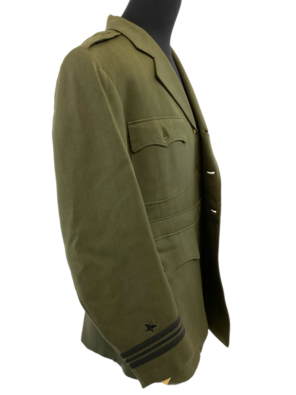 This vintage US Navy Naval Aviator Service Tunic is a remarkable piece of military history and an excellent addition to any collection. Crafted in a classic four-pocket style, this green service tunic exudes the distinguished look of naval aviation heritage. The tunic, sized at 38, features authentic combat ribbons, reflecting the valiant service of its original wearer. While the pilot’s wing has been removed by a previous owner, the tunic still holds a wealth of character and historical significance. Whether you’re a military memorabilia enthusiast or a history aficionado, this Naval Aviator tunic offers a tangible connection to the bravery and dedication of USN pilots. Ideal for display or for use in educational settings, this service tunic is a genuine artifact that tells the story of American naval aviation.