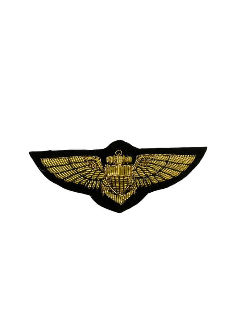 The ‘US USN Navy Bullion Pilots Wing’ is a highly prestigious symbol of honor, representing the valiant efforts of the United States Navy pilots. It is meticulously crafted with fine bullion thread, showcasing the intricate detailing and high level of craftsmanship that it requires. The design features the iconic American eagle, clutching an anchor – a representation of the US Navy’s strength, courage and commitment. The wings spread wide from the eagle signify the vast reaches of the sky, indicative of the pilot’s mastery over the airspace. Traditionally worn on the uniform, this emblem is a proud display of the wearer’s skill and service to the country. The ‘US USN Navy Bullion Pilots Wing’ is more than just an accessory; it is a testament to the bravery of those who soar the skies in defense of their nation.