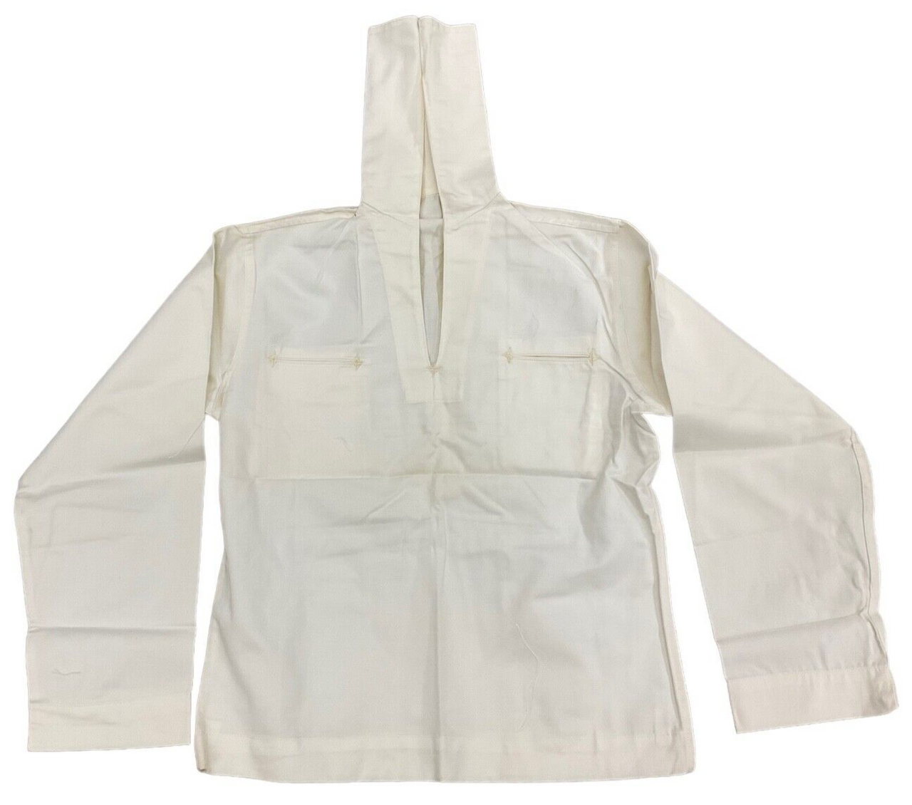 The US USN Navy White Ratings Cotton Jumper in Size 40 R is a classic and iconic piece of naval attire that embodies tradition and functionality. Tailored from 100% durable cotton, this jumper provides both comfort and durability, making it ideal for daily wear or as a collectible item. The pristine white fabric is emblematic of the Navy’s standards, reflecting a clean and professional appearance. Designed for ratings personnel, the jumper features authentic details such as the traditional flap collar and precise stitching, ensuring it meets the rigorous standards of naval uniforms. Size 40 R offers a regular fit that comfortably accommodates most body types, providing ease of movement during various duties. Whether you’re a military enthusiast, a re-enactor, or simply appreciate high-quality, historical clothing, this USN Navy White Ratings Cotton Jumper is a timeless addition to your collection.