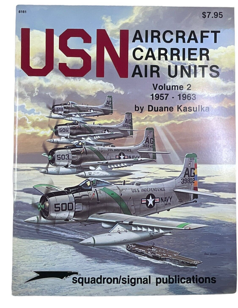 This is a used softcover US USN USMC Aircraft Carrier Air Units 1957 to 1963 Vol 2 Squadron Signal Reference Book.  Total of 64 pages with lots of pictures and information.