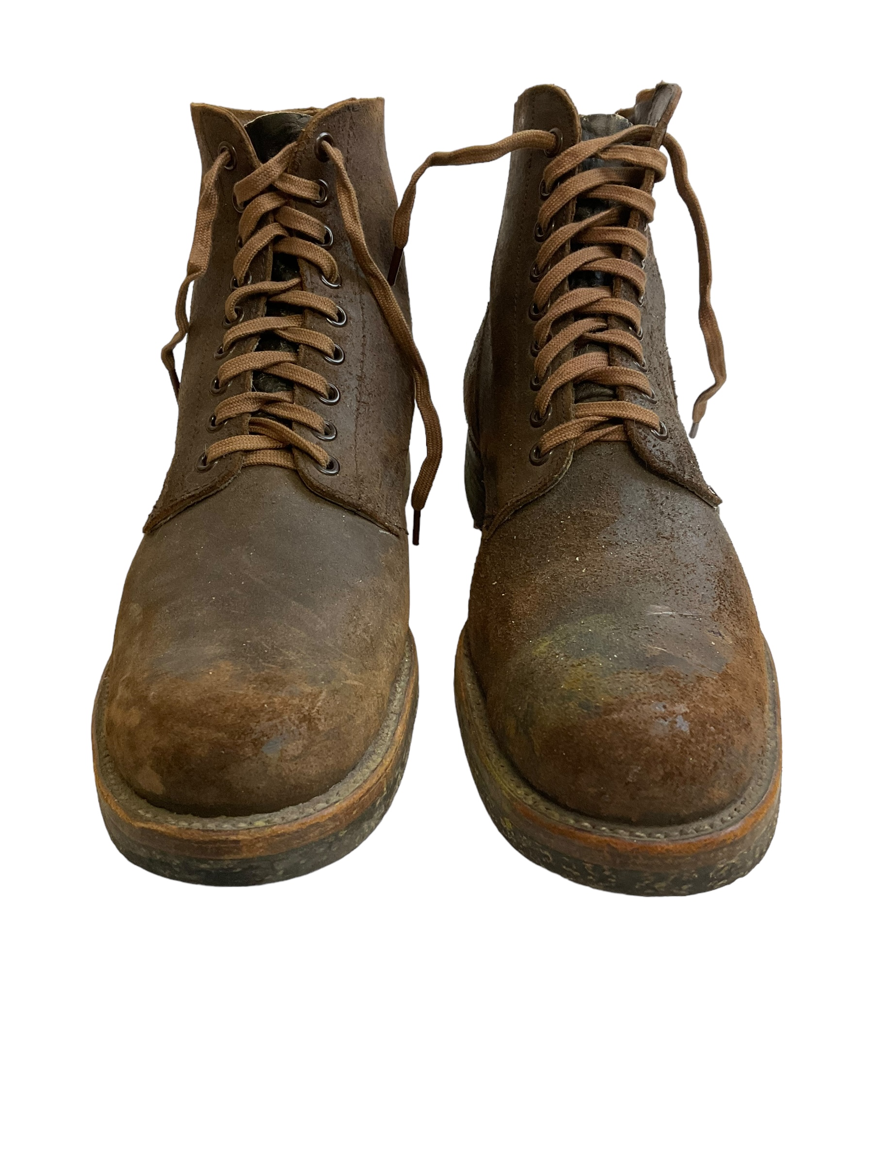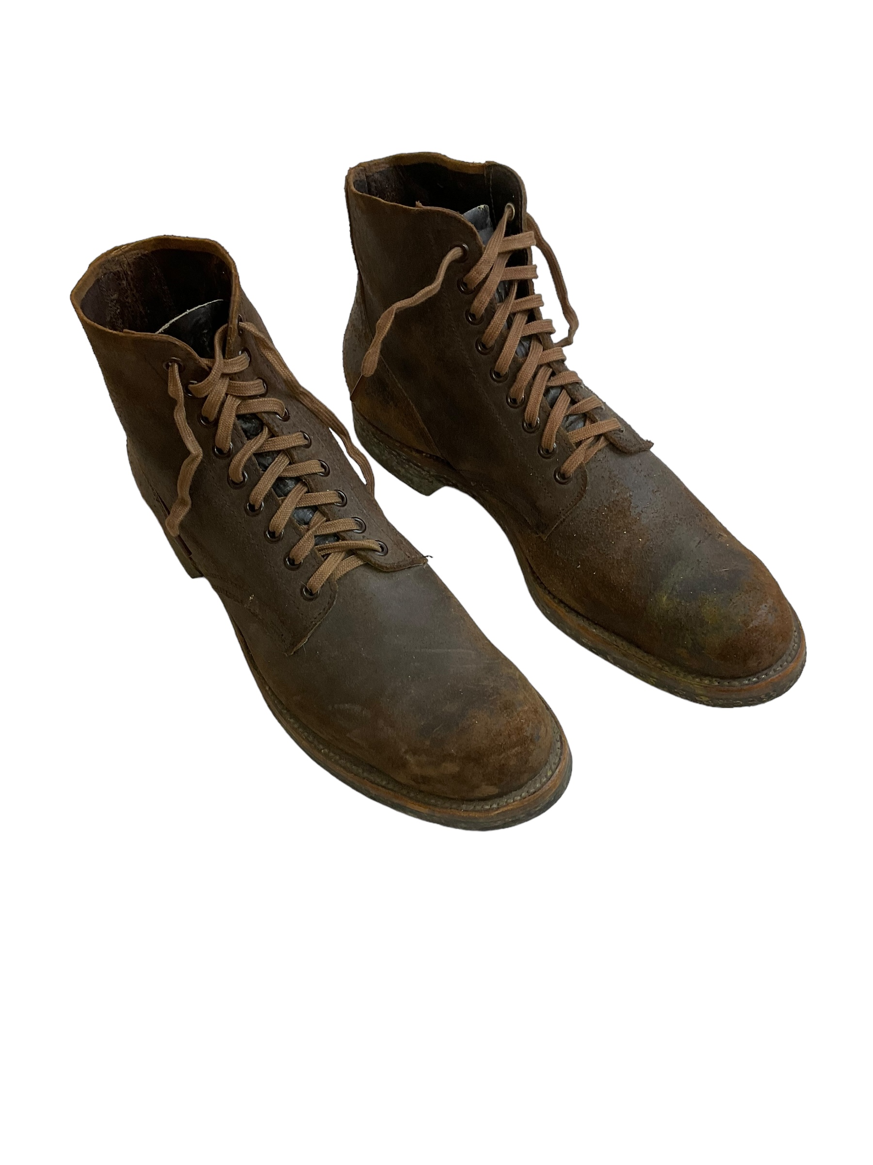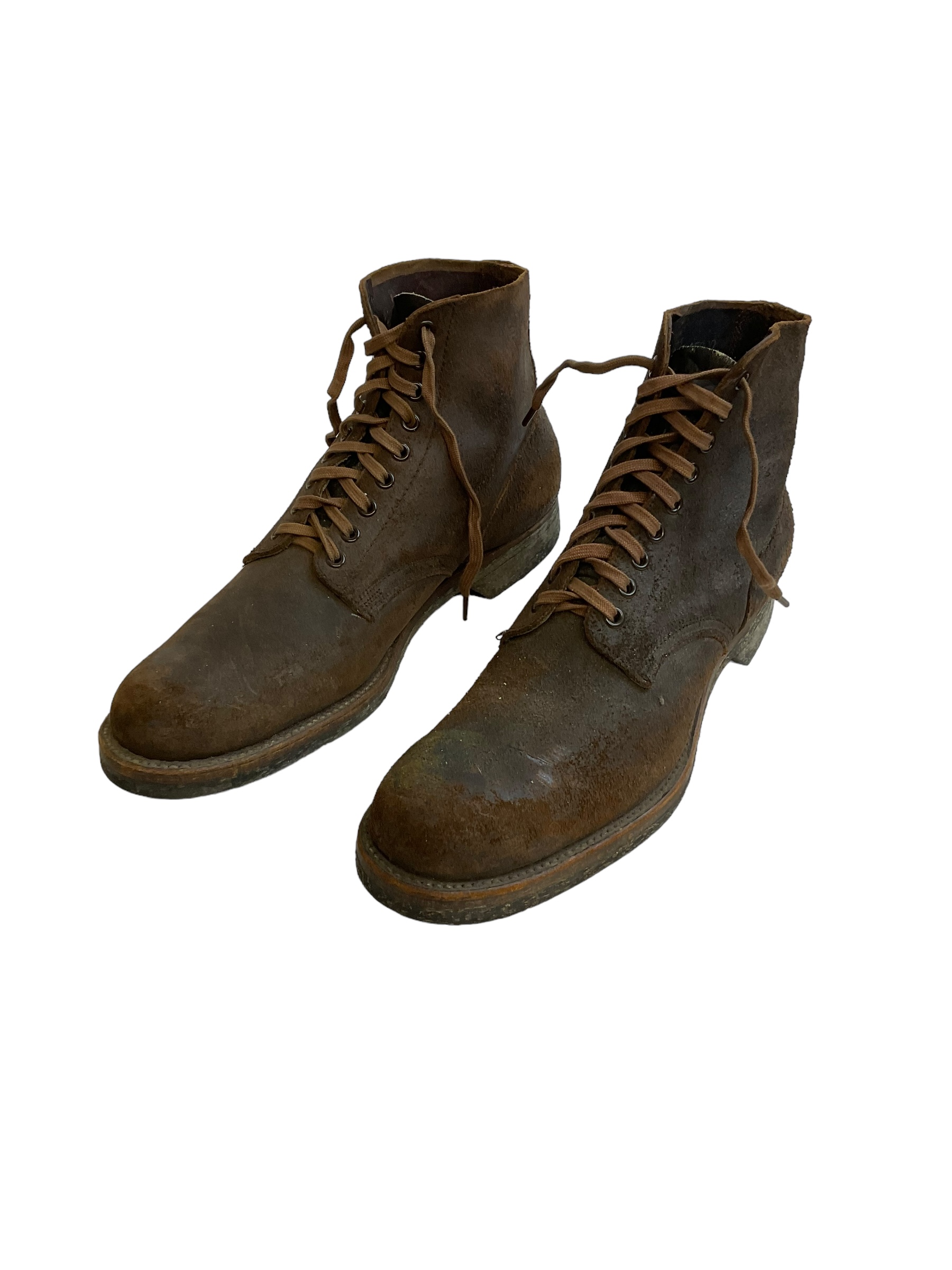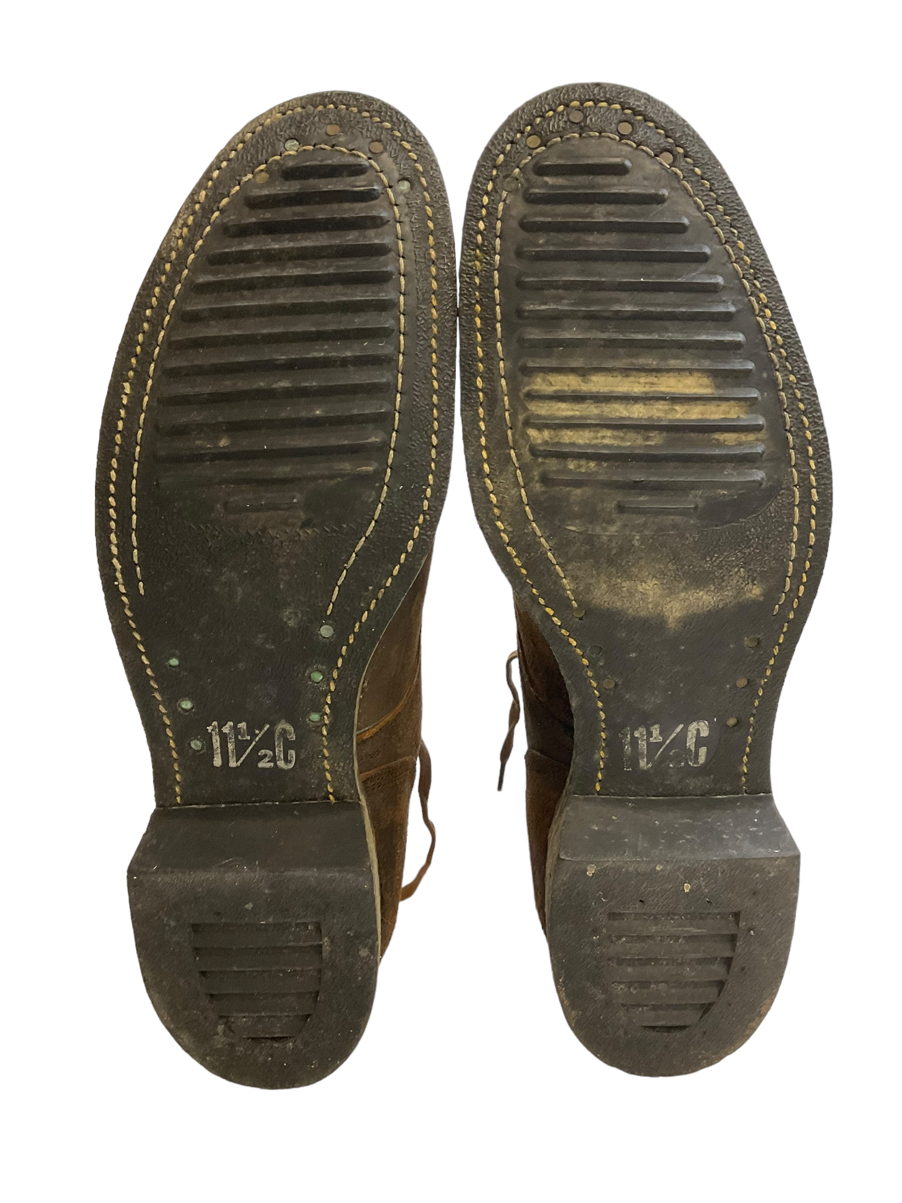 Step back in time with these vintage US Navy and Marine Corps Boondockers ankle boots, dated 1955. In a size 11 1/2 C, these authentic military surplus boots are a remarkable piece of history, representing the timeless quality and durability synonymous with mid-20th century US military gear. Crafted with robust leather, these boots feature classic, rugged construction designed for harsh conditions. Their distressed finish adds a unique character, showcasing decades of storied service. The sturdy sole provides excellent traction, ideal for both collectors and those appreciating wearable history. Ideal for military enthusiasts, vintage fashion collectors, or anyone with a love for well-crafted, authentic historical items. Whether displayed as a conversation piece or integrated into a period costume, these Boondockers are a rare find, offering a tactile connection to the past. Embrace a piece of American military heritage with these exceptional boots.