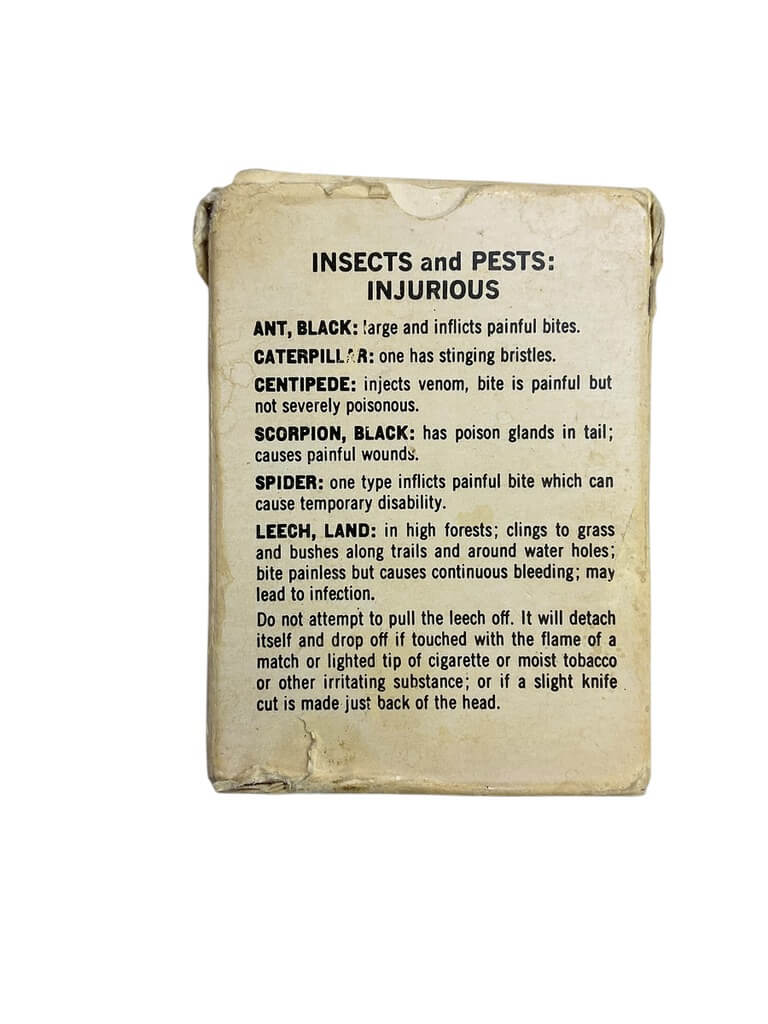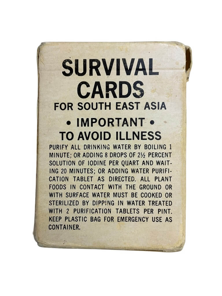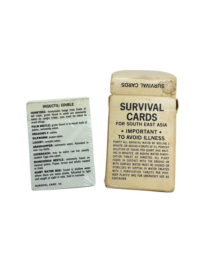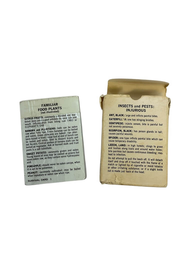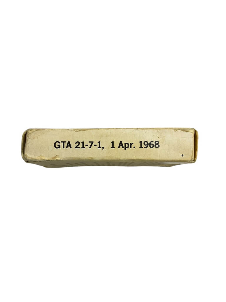 The ‘US Vietnam Survival Cards in Box Dated 1968’ is an exceptional piece of military memorabilia that speaks volumes about American history. This boxed set offers a fascinating glimpse into the practical tools and survival strategies used by American soldiers during the Vietnam War. Each card contains concise, vital information about survival techniques, first aid, and local fauna and flora. The box, dated 1968, is a testament to the tumultuous period of the Vietnam War, adding a layer of historical significance to the item. This collectible item is not only a survival guide but a tangible piece of history, making it an ideal acquisition for history enthusiasts, military collectors, or those interested in war-era artifacts. It provides a unique and authentic insight into the challenging conditions faced by US soldiers in Vietnam.