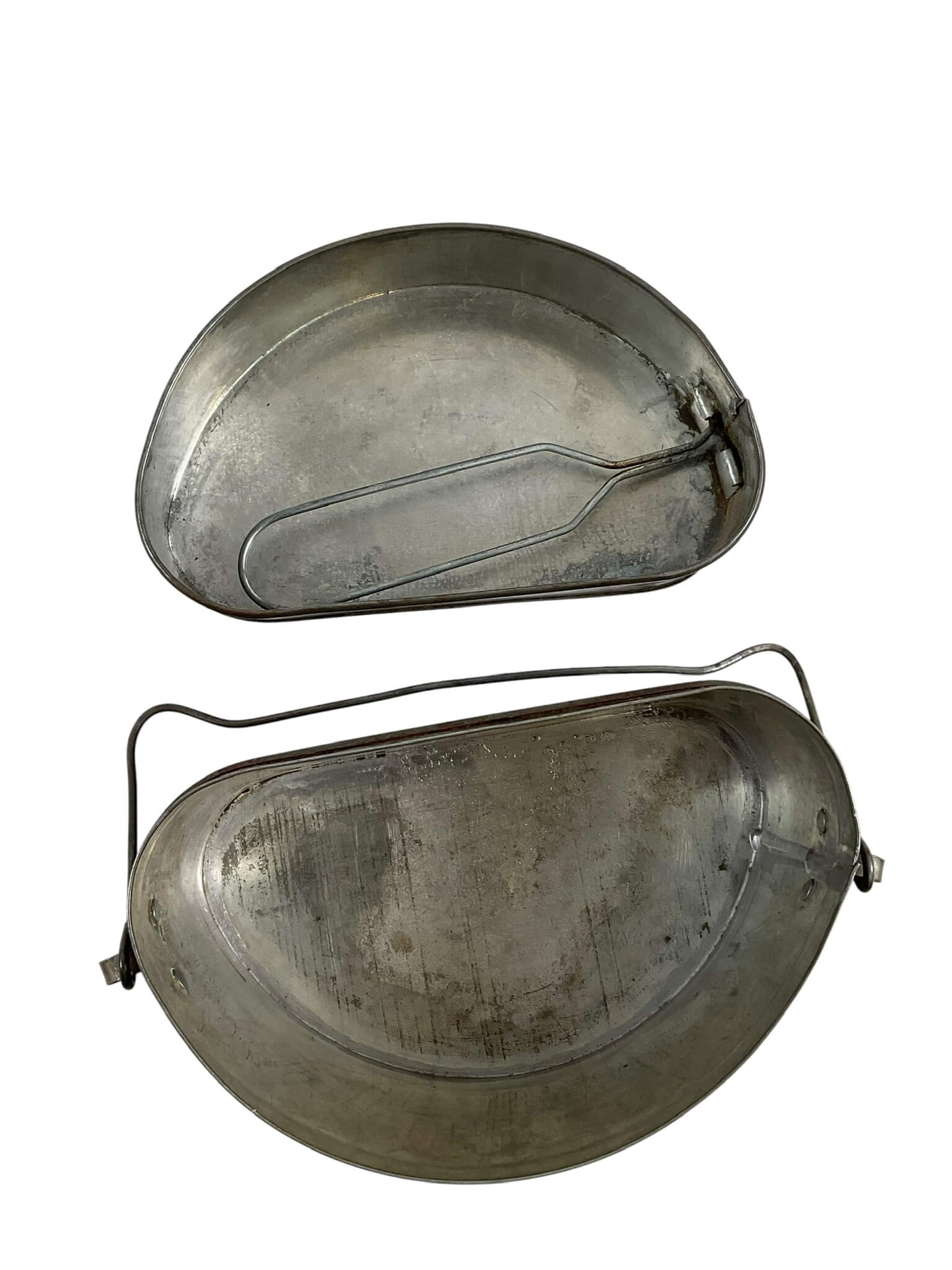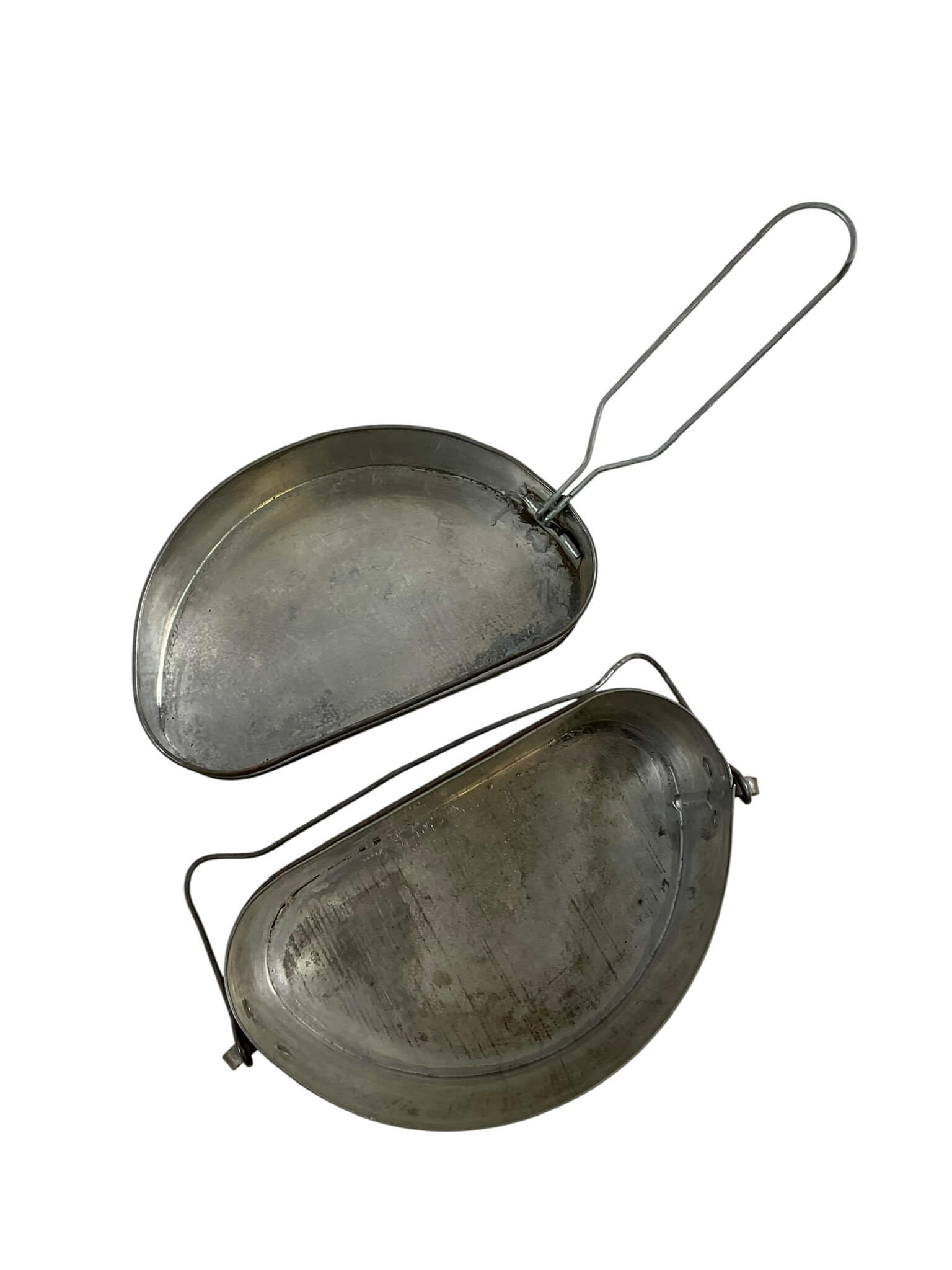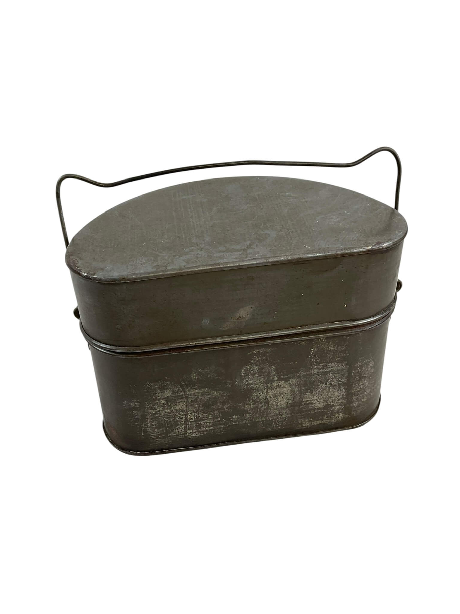 ‘WW1 Canadian CEF D-Shaped Mess Tin C Broad Arrowed’ is a historical artifact that reflects the courageous efforts of the Canadian Expeditionary Force (CEF) during World War I. This D-shaped mess tin is a testament to the survival and resilience of the soldiers in the harshest of conditions. The broad arrow mark on the tin signifies its military issue status, a common symbol used by the British Commonwealth to denote government property. Crafted with sturdy materials and a practical, collapsible design, the mess tin was an essential item for soldiers in the trenches, used for both cooking and eating. This artifact not only offers a glimpse into the daily life of a WW1 Canadian soldier, but also serves as a tangible piece of Canada’s rich military history.