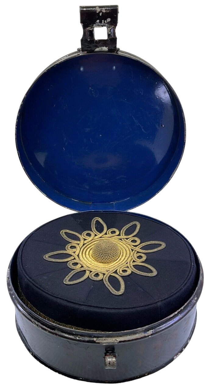 Victorian British Artillery Officers Pill Box Hat & Japanned Tin Woolwich London