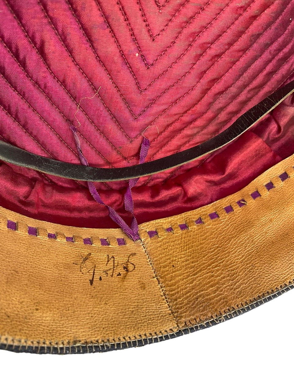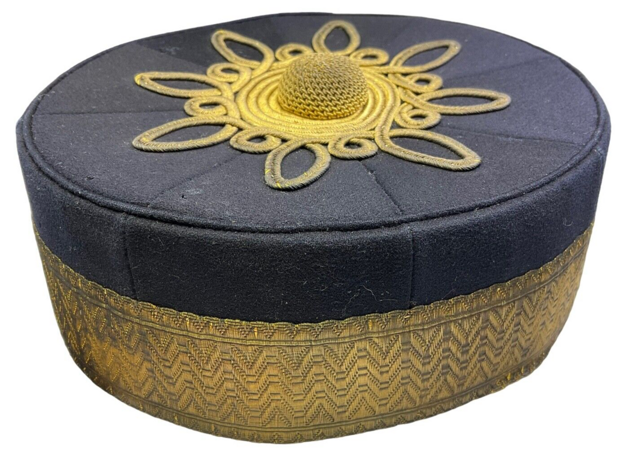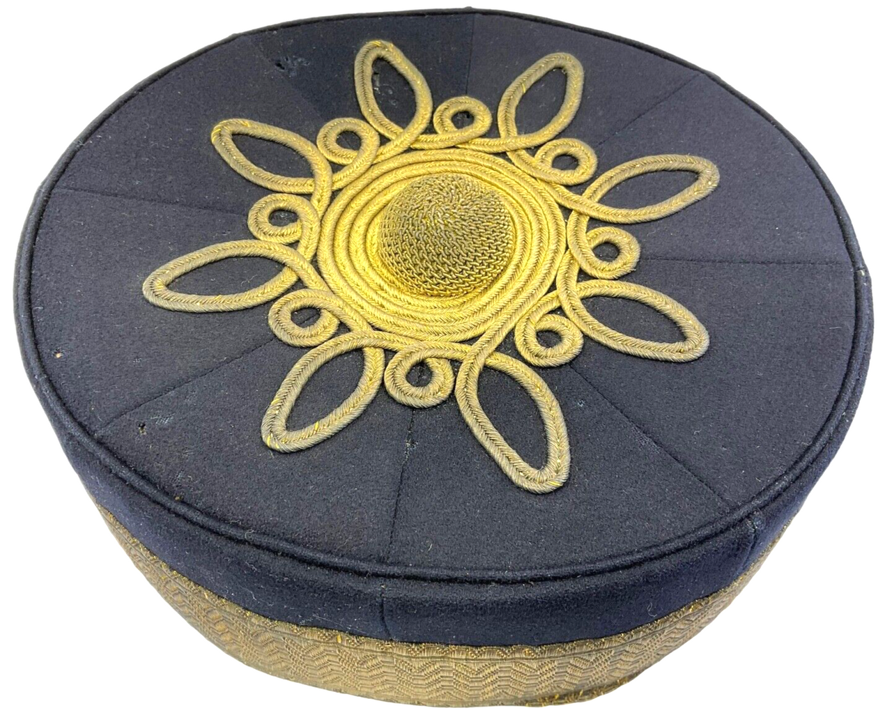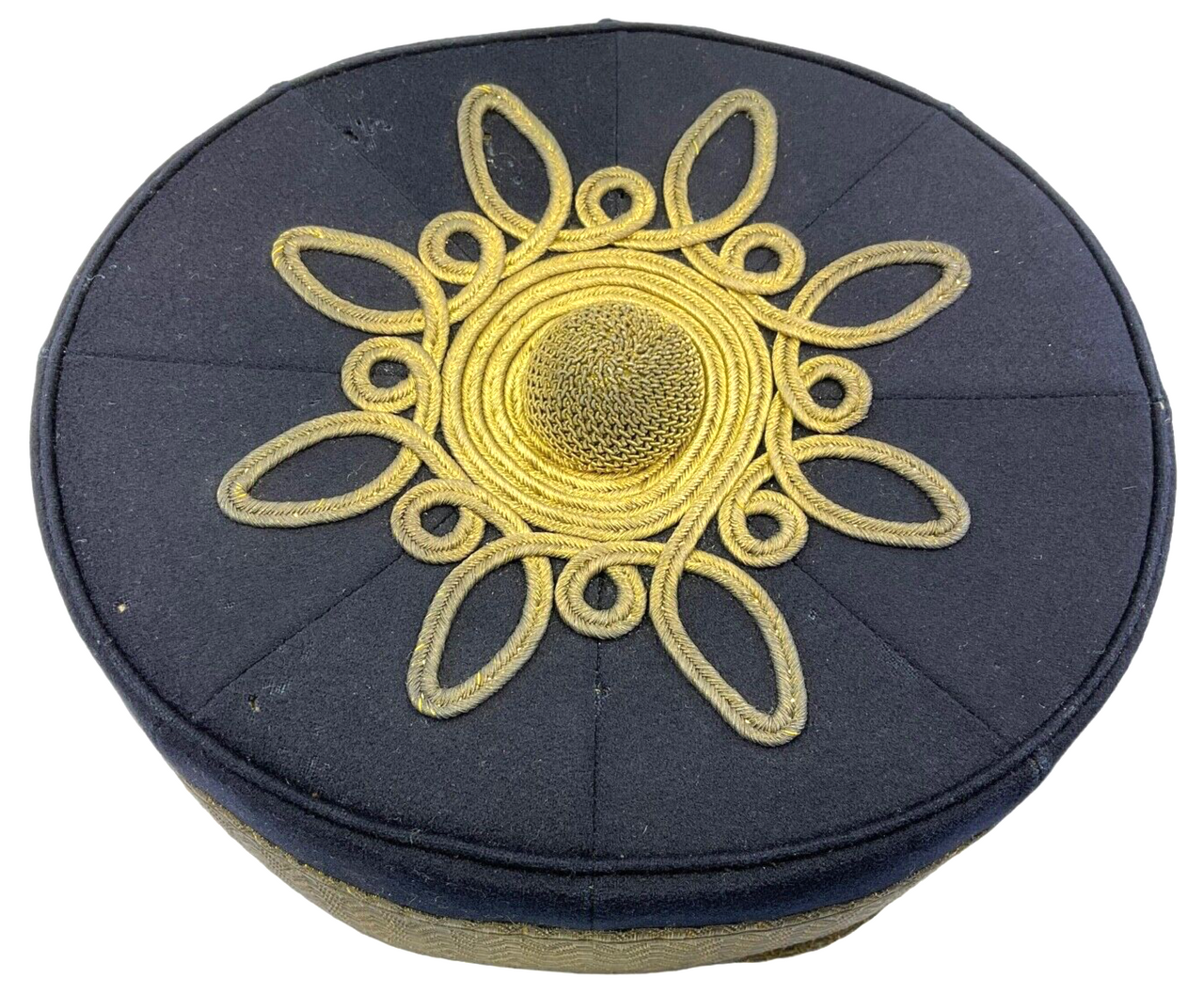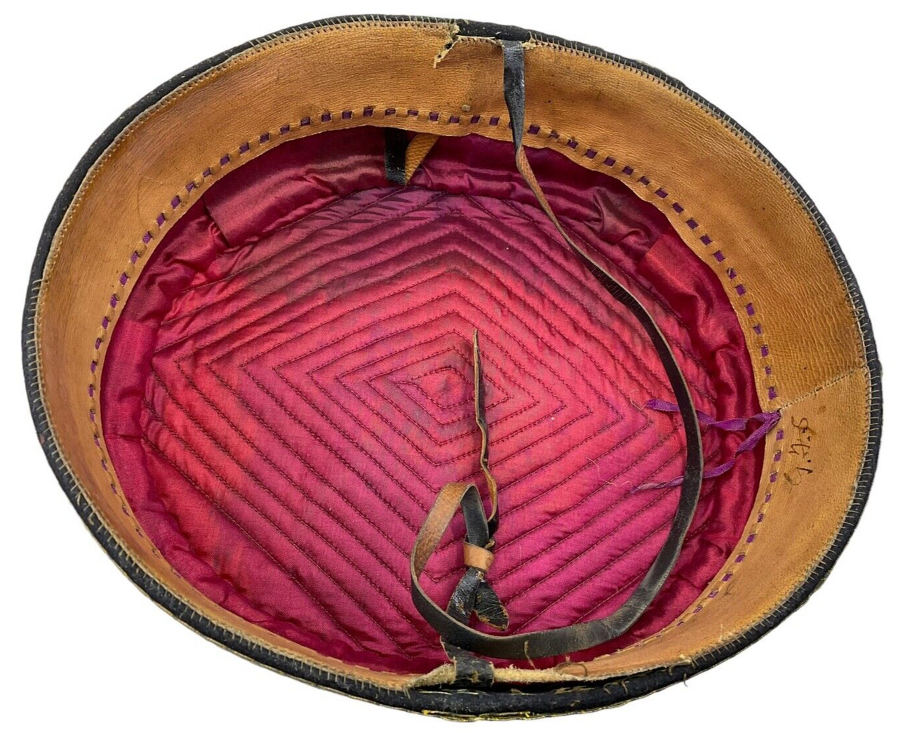 The ‘Victorian British Artillery Officers Pill Box Hat & Japanned Tin Woolwich London’ showcases a fascinating piece of military history. This finely preserved artifact includes an officer’s pillbox hat, a distinctive cylindrical cap made of high-quality wool, adorned with traditional decorative elements emblematic of Victorian military attire. Paired with the hat is a meticulously crafted japanned tin, a durable and glossy black lacquered container used for safe storage and transport. This set hails from Woolwich, London, the historic hub of British artillery training. Dating back to the Victorian era, it provides a glimpse into the regal and disciplined world of 19th-century British military officers. Ideal for collectors and history enthusiasts alike, this ensemble serves as a tangible connection to the past, embodying the elegance, precision, and storied traditions of British artillery regiments.