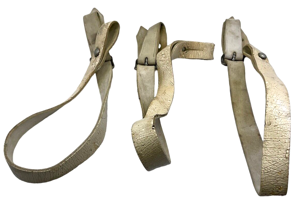 These Victorian British Buff White Leather Sabretache Straps are an exquisite addition for any historical enthusiast or collector of military memorabilia. Dating back to the Victorian era, these straps are crafted from high-quality buff white leather, a testament to the meticulous craftsmanship of the period. The set includes three straps, each designed to hold a sabretache, an ornamental case used by cavalry officers to carry important documents and personal effects. The straps exemplify the elegance and functionality of 19th-century British military gear. Their preserved condition allows a glimpse into the rigorous standards and style that characterized Victorian military attire. Ideal for display in a military collection, reenactment, or as a distinctive historical artifact, these straps capture the grandeur and precision of a bygone era. Owning this set enriches any collection with authentic pieces of British military history.