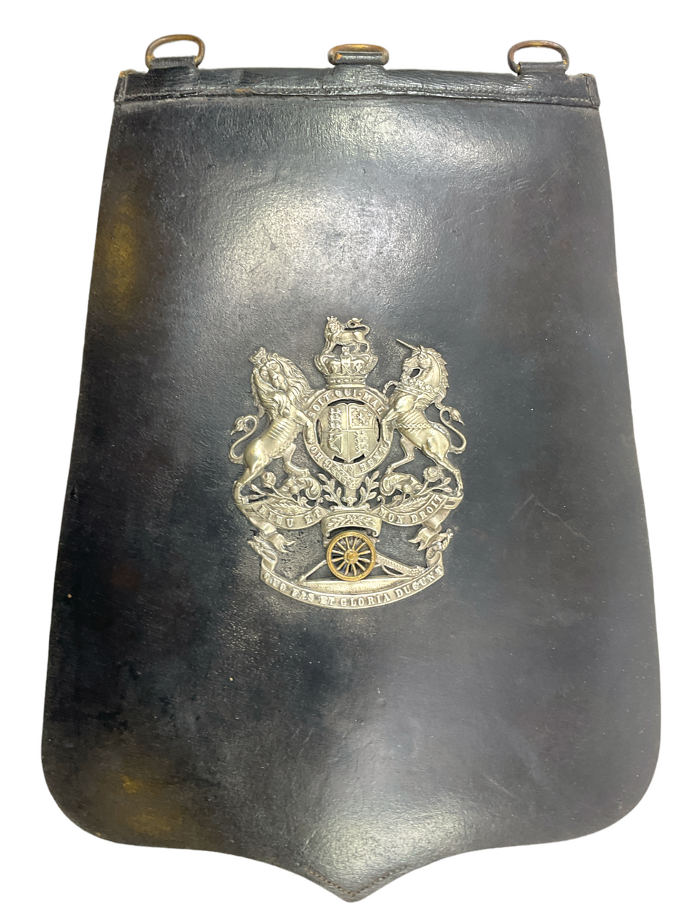 The ‘Victorian British Officers Volunteer Artillery Sabretache’ is a distinguished artifact that epitomizes the elegance and military precision of the Victorian era. This ceremonial accessory, designed for volunteer artillery officers, served both practical and decorative purposes. Typically constructed from sturdy and ornate materials, the sabretache featured elaborate embroidery, regal insignias, and intricate details that reflected the officer’s rank and regiment. It was traditionally worn suspended from the sword belt, providing easy access to important documents and orders. The design often included motifs such as the Royal Coat of Arms, artillery symbols, and other Victorian era iconography, making it a symbol of pride and distinction. Collectors and historians cherish these sabretaches for their craftsmanship and historical significance, as they provide a tangible connection to the valor and heritage of the volunteer forces during the reign of Queen Victoria.