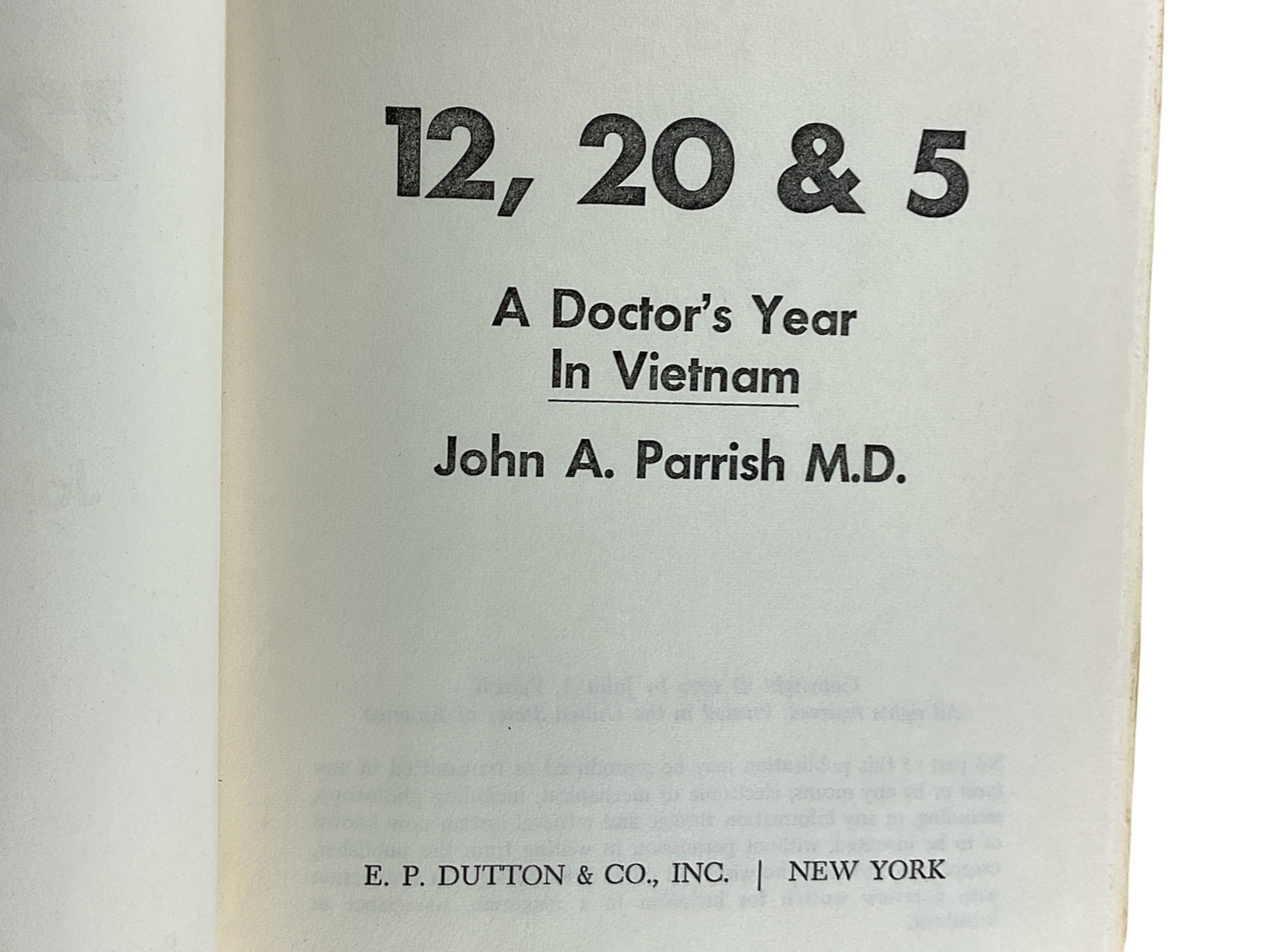 Vietnam War US 12, 20 & 5 A Doctors Year In Vietnam J Parrish MD HC Book