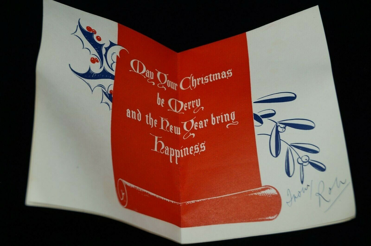 This Vintage WW2 Canadian RCAF Flocked Front Christmas Card is a rare and cherished piece of history, beautifully combining the spirit of the festive season with a touching tribute to the Canadian Royal Canadian Air Force. The front of the card features intricate flocking, adding a unique texture that enhances its visual appeal. Although slightly wrinkled, this card remains in good condition, embodying the resiliency and enduring charm of wartime memorabilia. The card’s design likely includes patriotic motifs and warm holiday wishes, serving as a reminder of the sacrifices made by service members and the comforting connections maintained with loved ones during the challenging times of World War II. A perfect addition for collectors of military artifacts or vintage holiday cards, this piece not only holds sentimental value but also preserves a piece of Canadian history.