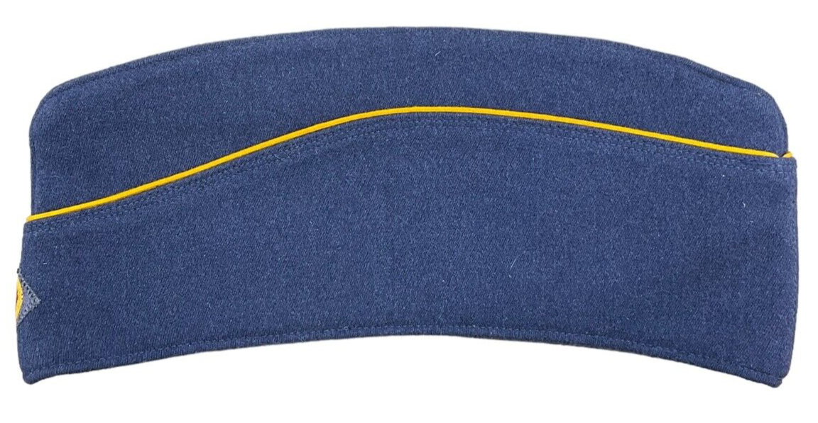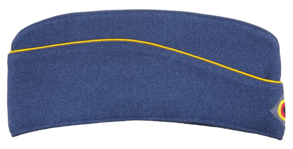 The ‘West German Air Force Yellow Piped Side Cap’ represents a distinctive piece of military headgear worn by the personnel of the post-World War II West German Luftwaffe. Crafted from high-quality, durable fabric, the cap is designed in a stylish yet functional manner to meet the demands of military life. Its most striking feature is the yellow piping along the sides, which adds a touch of contrast and signifies the affiliation with the air force. The side cap also bears the insignia of the German Air Force, symbolizing pride and unity among the service members. Comfortable and practical, the cap offers a snug fit and is easy to wear with various uniforms. This side cap is not only a piece of military attire but also a collector’s item, capturing the essence of a significant period in Germany’s military history.