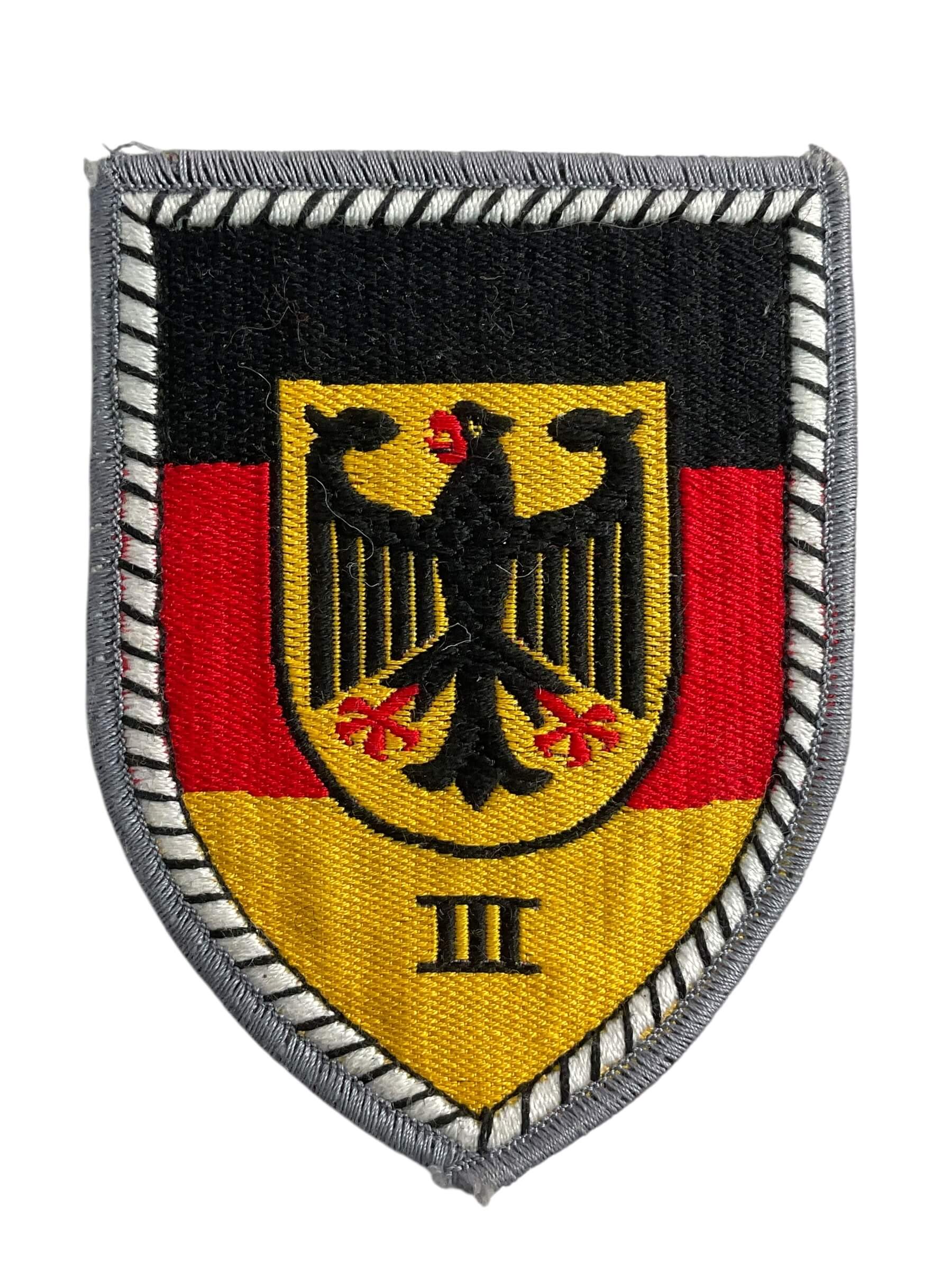 The West German Army 3rd Military District Command Patch is an original insignia representing the 3rd Military District Command (Wehrbereichskommando III) of the Bundeswehr, the unified armed forces of the Federal Republic of Germany. This formation was established during the Cold War period as part of West Germany’s defense structure within the NATO alliance. The patch is typically embroidered with the district’s