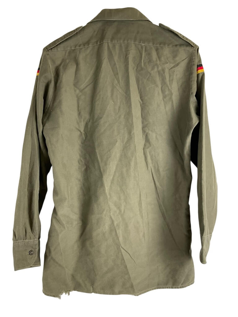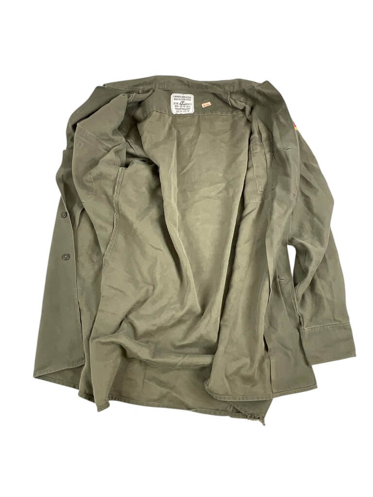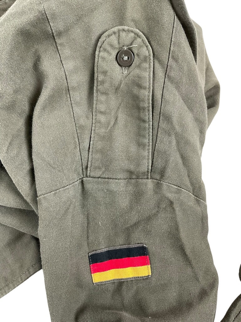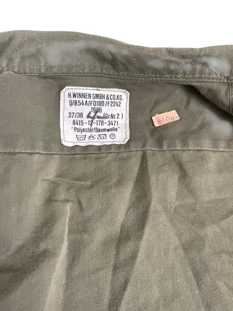 This is an authentic West German Army Combat Shirt, size 37/38, bearing its authenticity from the year 1986. Made with precision and attention to detail, the shirt is a testament to the quality of military apparel during the Cold War era. It features a robust construction, made from durable fabric, designed to withstand harsh conditions. The shirt comes in the classic flecktarn camouflage pattern, widely used by the West German Army. As a functional piece, it comes with two chest pockets for convenient storage. The shirt is in great condition, showing minimal signs of use. This combat shirt is not only a great addition for military clothing collectors but also for those interested in historical artifacts. It represents a piece of Cold War history, making it a unique and rare find.