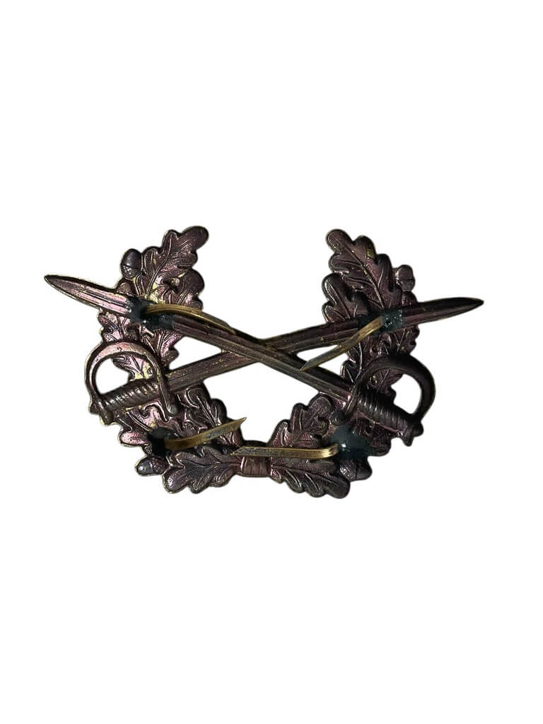 The West German Army Gold Cap Badge is a military emblem originating from the post-World War II period in Germany. This gold-colored insignia, typically affixed to a soldier’s cap, represents the Bundeswehr, West Germany’s unified armed forces from 1955-1990. Notably detailed and made from durable material, this badge is a significant historical artifact.