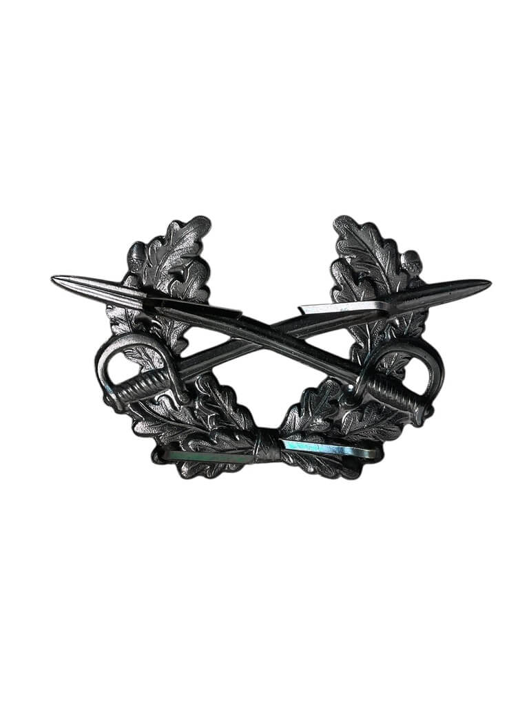The West German Army Silver Cap Badge is a military artifact representing a significant era in modern history. Manufactured in West Germany during the Cold War period, between 1949 and 1990, this cap badge was typically worn by enlisted personnel in the country’s main land defense force, the Bundeswehr. The badge is symptomatic of West German Army’s uniform culture, characterized by a silver insignia against a green or grey fabric cap. The principal design includes the iconic Iron Cross, circumscribed within a wreath and surmounted by an eagle, rendered in silver-toned metal. The precise craftsmanship ensures finer detailing and durability. This West German Army Silver Cap Badge not only serves as a prevalent militaria collectible but also a tangible reminder of the post-World War II political climate in Germany. Note: Authenticating such badges is essential as their reproduction for commercial purposes is common.