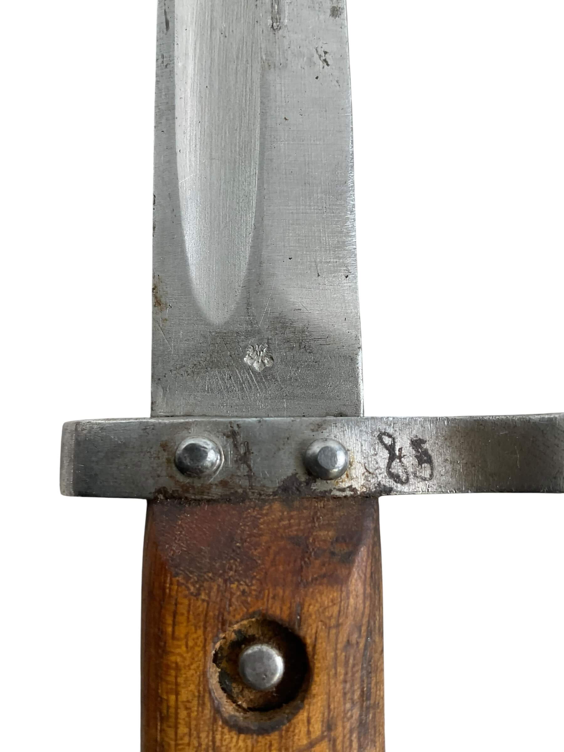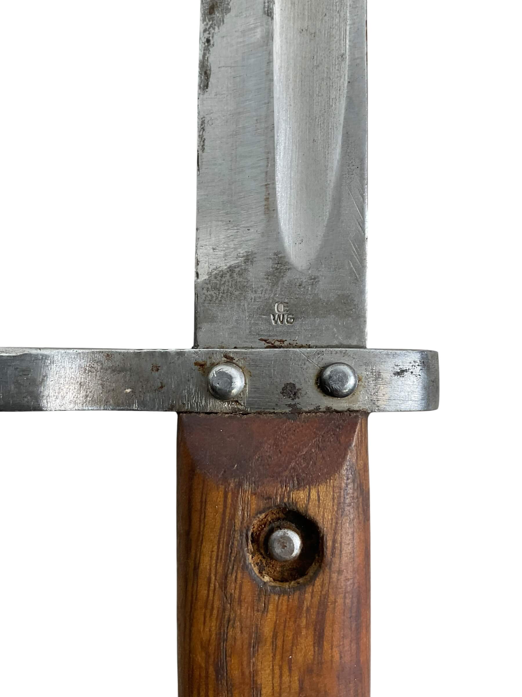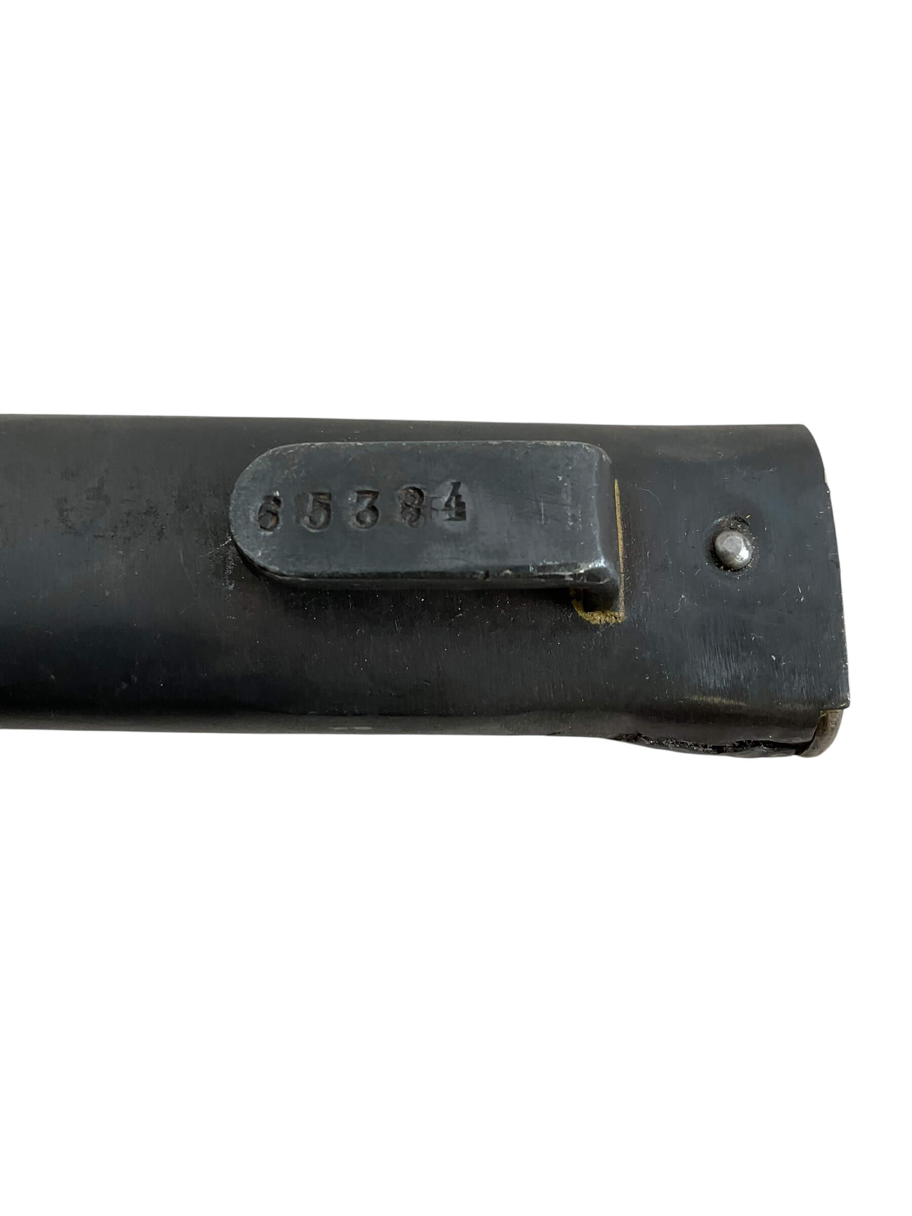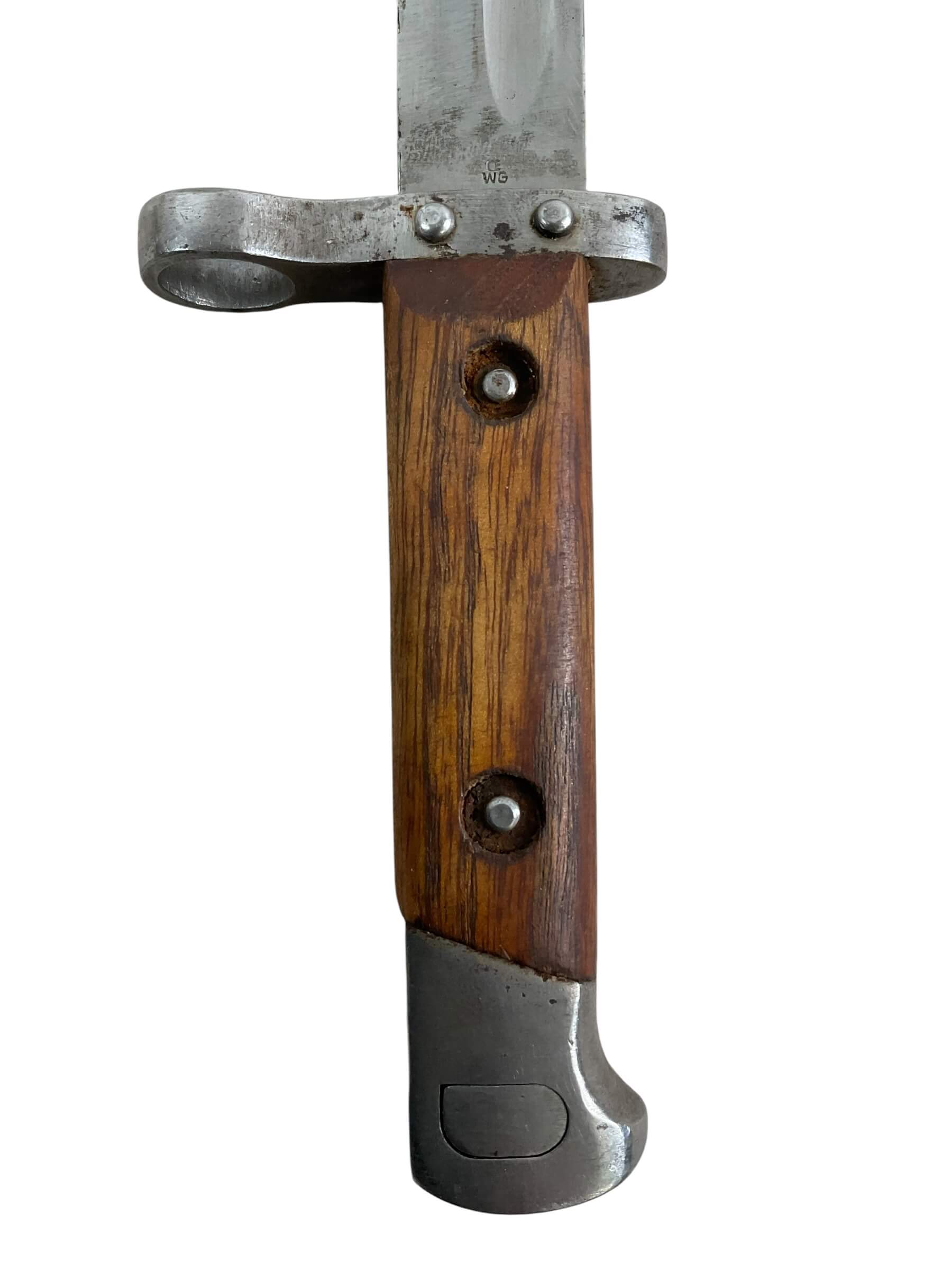 The WW1 Austrian M95 Mannlicher Steyr Bayonet with Scabbard is an exceptional piece of military history. This bayonet, produced for the Austrian-Hungarian army, was part of the standard equipment for the Mannlicher M95, a bolt-action rifle widely used during World War I. The bayonet features a sturdy steel construction, a single-edged blade, and a hooked quillon crossguard, which adds to its distinctive design. Its scabbard, typically made of metal, is designed to protect the blade and ensure its longevity. The M95 bayonet, with its unique craftsmanship and historical significance, is not only a must-have for collectors of World War I memorabilia but also a fascinating artifact for anyone interested in military history. Its connection to one of the most tumultuous periods in world history makes it a truly captivating collectible.