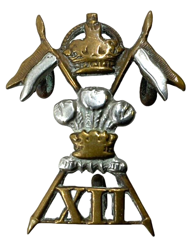 WW1 British 12th Royal Lancers Collar Badge Insignia Single