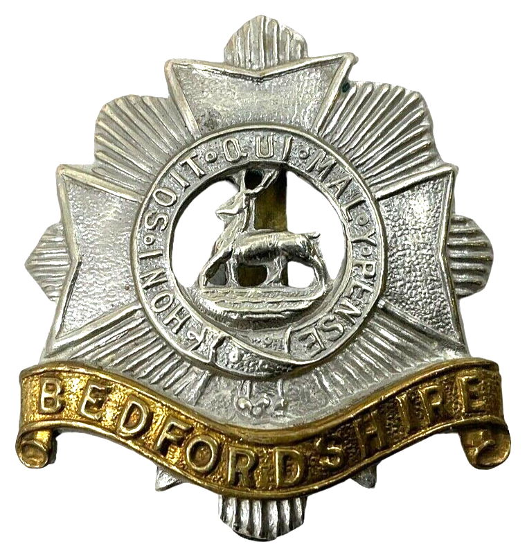 The WW1 British Bedfordshire Regiment Cap Badge is a meticulously crafted military insignia that epitomizes the valor and heritage of the Bedfordshire Regiment during the First World War. This brass badge features an intricately designed Hart, symbolizing the courage and steadfastness of the soldiers from Bedfordshire who served on the front lines. Central to its design is the regimental motto, “Montis Insignia Calpe,” which translates to “The badge of the rock of Gibraltar,” referencing the regiment’s distinguished history and fortitude. The badge would have been worn with pride on the service caps of officers and enlisted men, serving both as a symbol of identity and a mark of honor. Collectors and historians regard this artifact not only as a piece of military memorabilia but also as a poignant reminder of the bravery and sacrifice exhibited by the regiment during one of history’s most tumultuous periods.