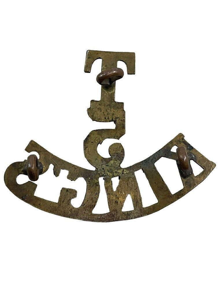 This is a World War I British Expeditionary Force (BEF) 5th King’s Regiment Territorial shoulder title, a single piece that holds significant historical value. The shoulder title, made of durable brass, was worn by members of the 5th Battalion of the King’s Regiment, one of the territorial units of the British Army. Serving as an identifying insignia, this badge would have been proudly displayed on the shoulder of a soldier’s uniform, indicating their regiment and status within the Territorial Force. The craftsmanship reflects the period’s military insignia standards and offers a glimpse into the personal and unit identity during the Great War. Collectors and historians will appreciate its authenticity and the story it tells of the brave men of the 5th King’s Regiment who contributed to the larger efforts of the British forces during a pivotal time in history. This piece is a tangible connection to the courageous service and heritage of the Territorial soldiers.