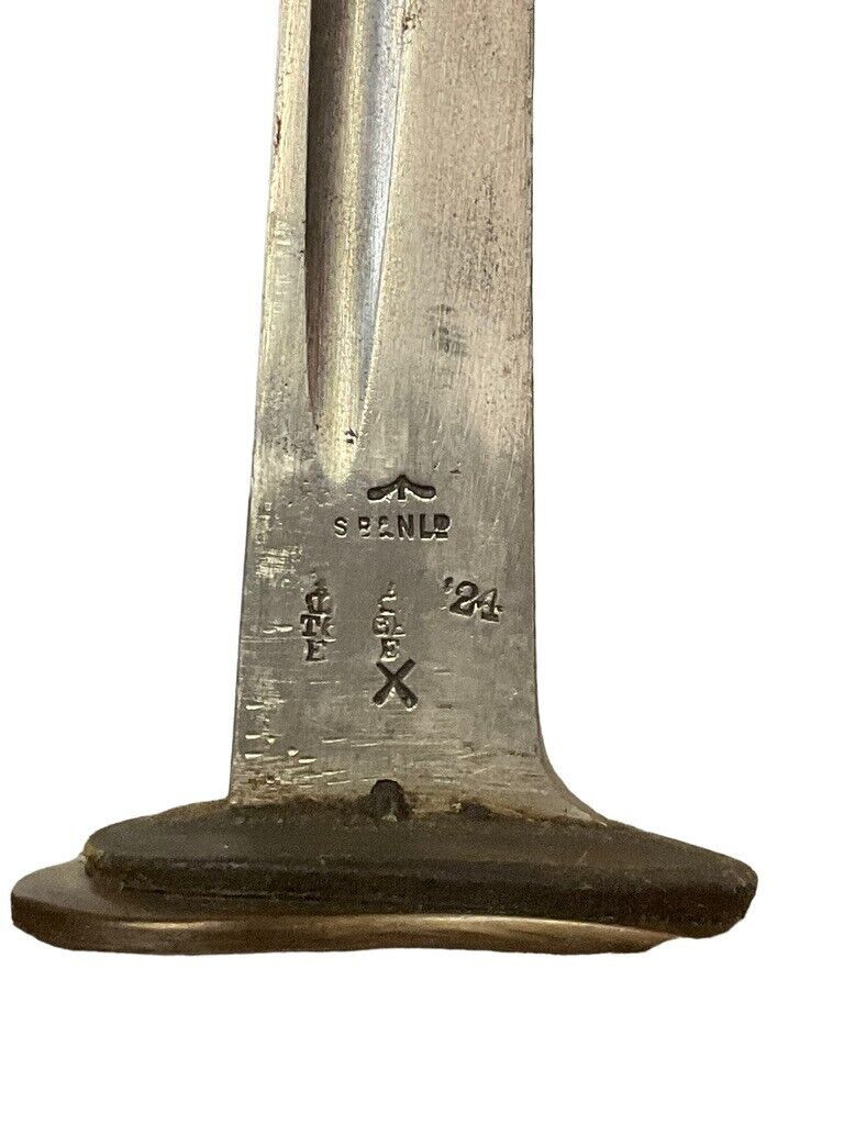 The WW1 British BEF 7th Hussars 1908 Pattern Other Ranks Cavalry Sword with Scabbard is an exceptional historical artifact. This impressive sword, used by the British Expeditionary Force during World War I, exemplifies the craftsmanship and military heritage of the early 20th century. The 1908 pattern, specifically designed for cavalry use, features a robust, straight blade optimized for thrusting, reflecting the tactical needs of mounted soldiers. Distinctive to the 7th Hussars, an esteemed cavalry regiment, this sword carries with it stories of valor and service from the tumultuous war period. The accompanying steel scabbard is equally notable, designed to protect the blade while enduring the rigors of battle. Collectors and historians alike will appreciate the authenticity and historical significance of this piece, offering a tangible link to the courage and traditions of British cavalry forces in WW1.