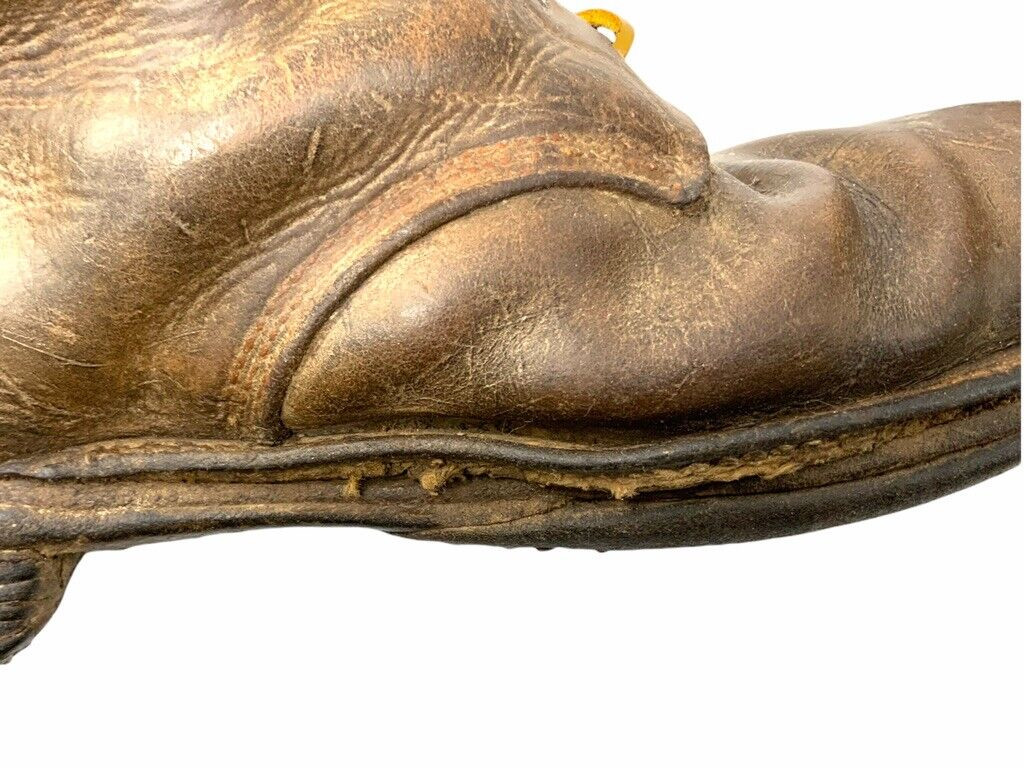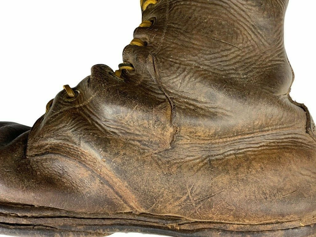 The WW1 British BEF Canadian CEF Cavalry Drivers High Top Boots represent a remarkable piece of military history, embodying the durability and style essential for the brave cavalry drivers of the era. Crafted with precision, these high-top boots were designed to meet the demands of rigorous wartime conditions. While devoid of discernible dates or markings, their vintage authenticity is unmistakable, making them perfect for historical display or as a collector’s treasure. These boots, however, are not suited for regular wear due to their age and condition, and resoling them could compromise their historical integrity. Ideal for enthusiasts of military memorabilia or for educational exhibitions, these boots serve as a poignant reminder of the resilience and fortitude exhibited by the soldiers of the British Expeditionary Force and the Canadian Expeditionary Force during World War I.