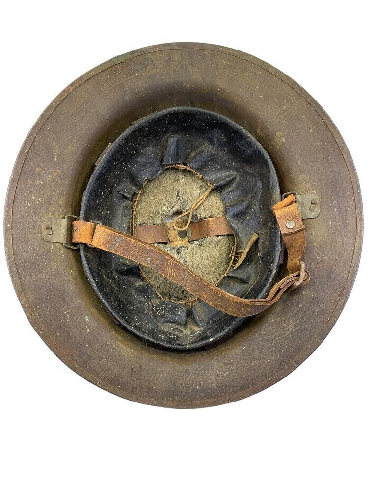 The WW1 British BEF Canadian CEF Mk1 Steel Helmet with Liner and Chinstrap HS148 is an authentic piece of military history. Highly reminiscent of the early 20th century warfare, this helmet was standard issue to the British Expeditionary Force (BEF) and the Canadian Expeditionary Force (CEF) during World War I. Crafted from durable steel, it features the distinctive Brodie helmet design, providing effective protection to soldiers in the trenches. The helmet is complete with its original liner, offering a glimpse into the practical aspects of wartime equipment. The chinstrap is intact, ensuring a secure fit that was crucial for soldiers amidst the chaos of battle. Each detail of the Mk1 helmet, from its robust structure to its historical significance, illustrates the bravery and resilience of those who served. Model HS148 stands out as not just a collectible, but a tribute to the valor of the Great War soldiers.