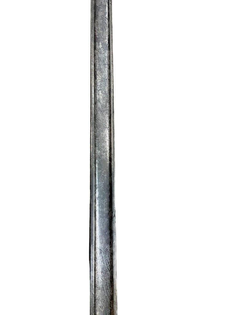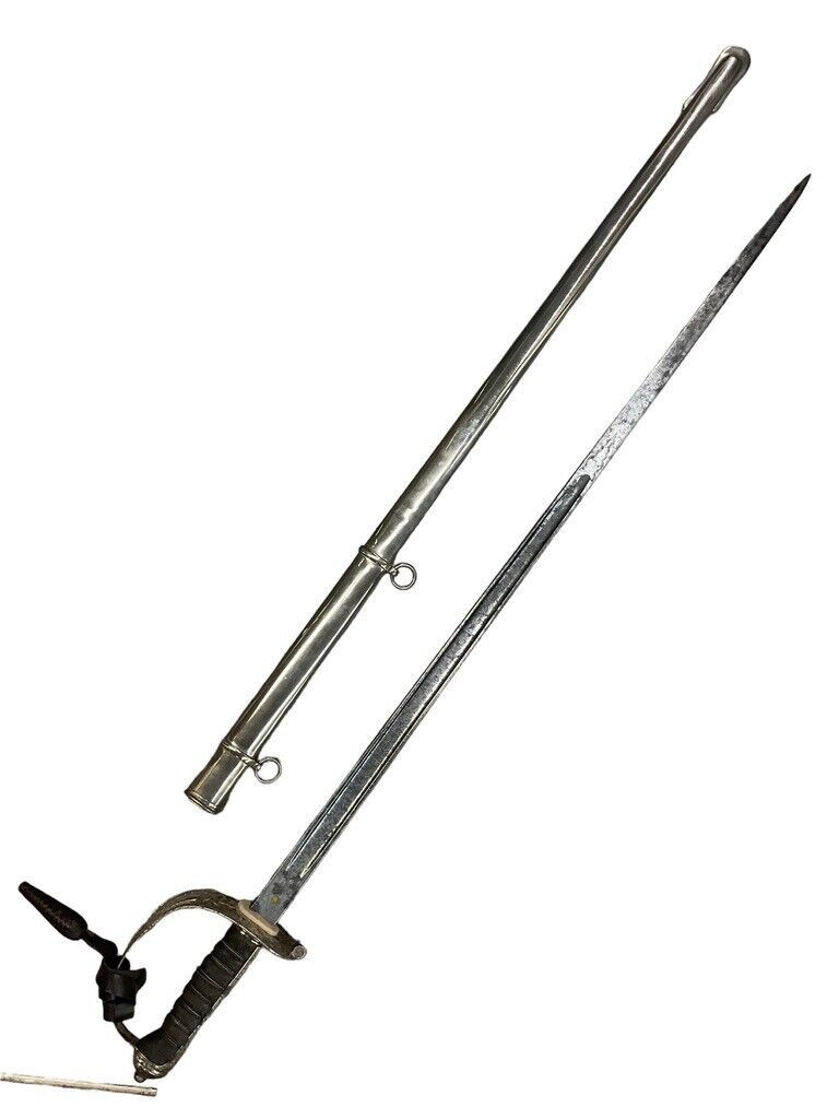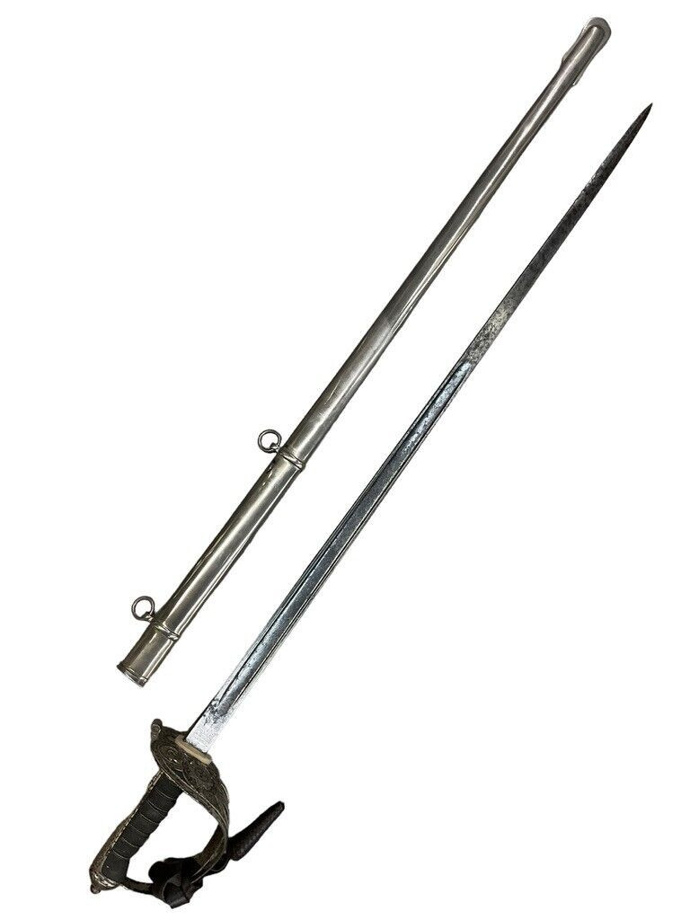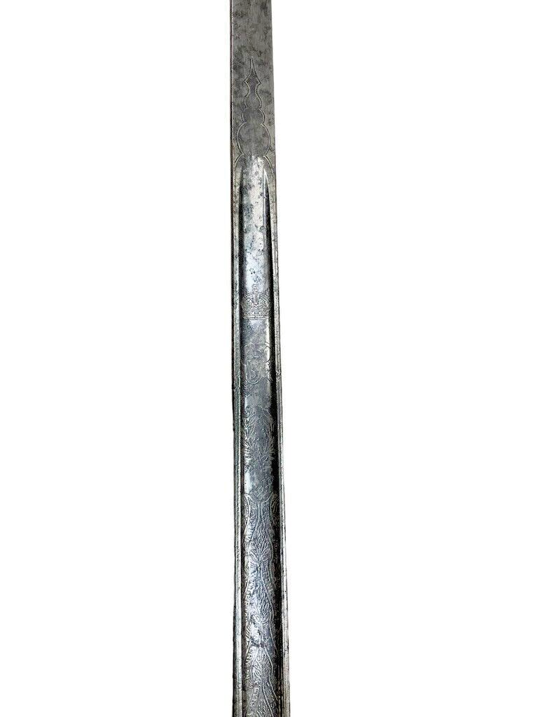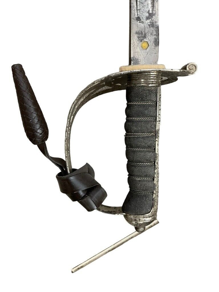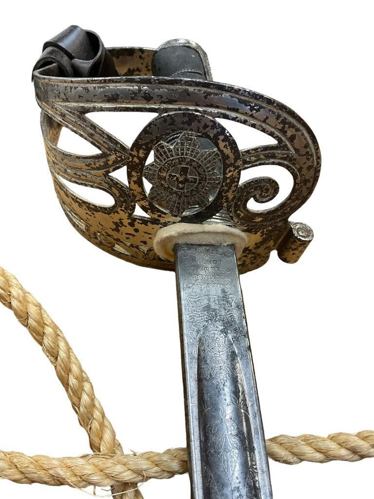 WW1 British BEF Coldstream Guards Officers Sword Wilkinson Lt George Stubley This historical artifact is a World War I British Expeditionary Force (BEF) Coldstream Guards officer’s sword, superbly crafted by the renowned Wilkinson Sword Company. It belonged to Lieutenant George Stubley, adding a profound personal dimension to its significance. The sword epitomizes the bravery and honor of the Coldstream Guards, one of the oldest and most distinguished regiments in the British Army. Featuring intricate designs typical of Wilkinson’s superior craftsmanship, the sword is not just a weapon but a symbol of duty and tradition. Its scabbard and hilt exhibit detailed engravings and markings that denote its prestigious origins and the esteemed rank of its owner. This piece serves as a poignant reminder of Lt. Stubley’s service and the broader historical context of World War I, making it a valuable collectors’ item and an important piece of military history.