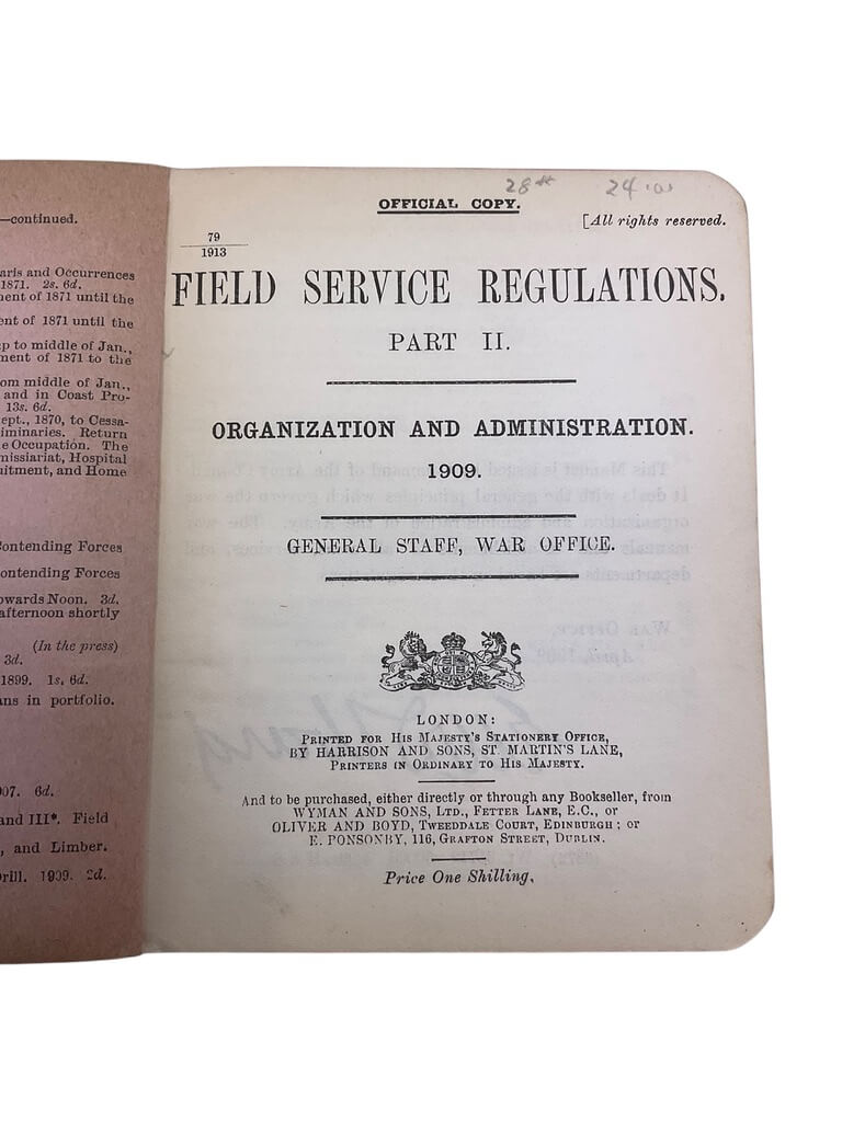 WW1 British BEF Field Service Regulations Part 2 Manual Dated 1909 Used Hardcover Reference Book