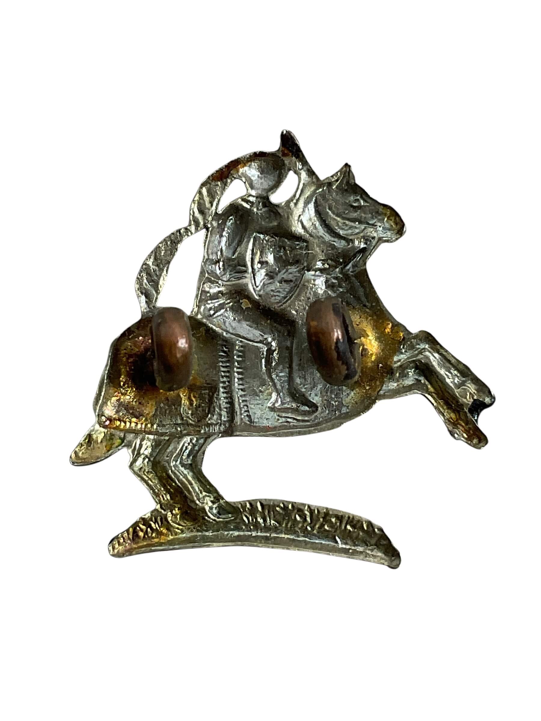 The WW1 British BEF Fife and Forfar Yeomanry Collar Insignia Single is a military collectible emblem belonging to the British Expeditionary Force’s (BEF) Fife and Forfar Yeomanry. Highlighting the unit’s distinguished heritage, this insignia is worn on the collar of the uniform, offering a visual symbol of the wearer’s affiliation.