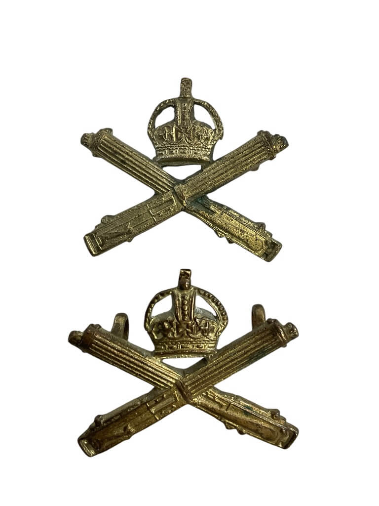 This product is a pair of WW1 British BEF Machine Gun Corps Officers Collars Insignia. These historical pieces were used as marks of rank and regiment by Officers of the British Expeditionary Forces (BEF) Machine Gun Corps during the First World War. Each insignia is meticulously crafted, reflecting the robustness and precision of early 20th-century British military aesthetics. The pair includes two insignia, each designed to be worn on the collar of an officer’s uniform. They are made from quality materials that have withstood the test of time, preserving their historical significance. These collar insignia are not just military antiques, but symbols of courage and dedication of the officers who served in one of the most influential conflicts in history. Ideal for collectors of military memorabilia or history enthusiasts.