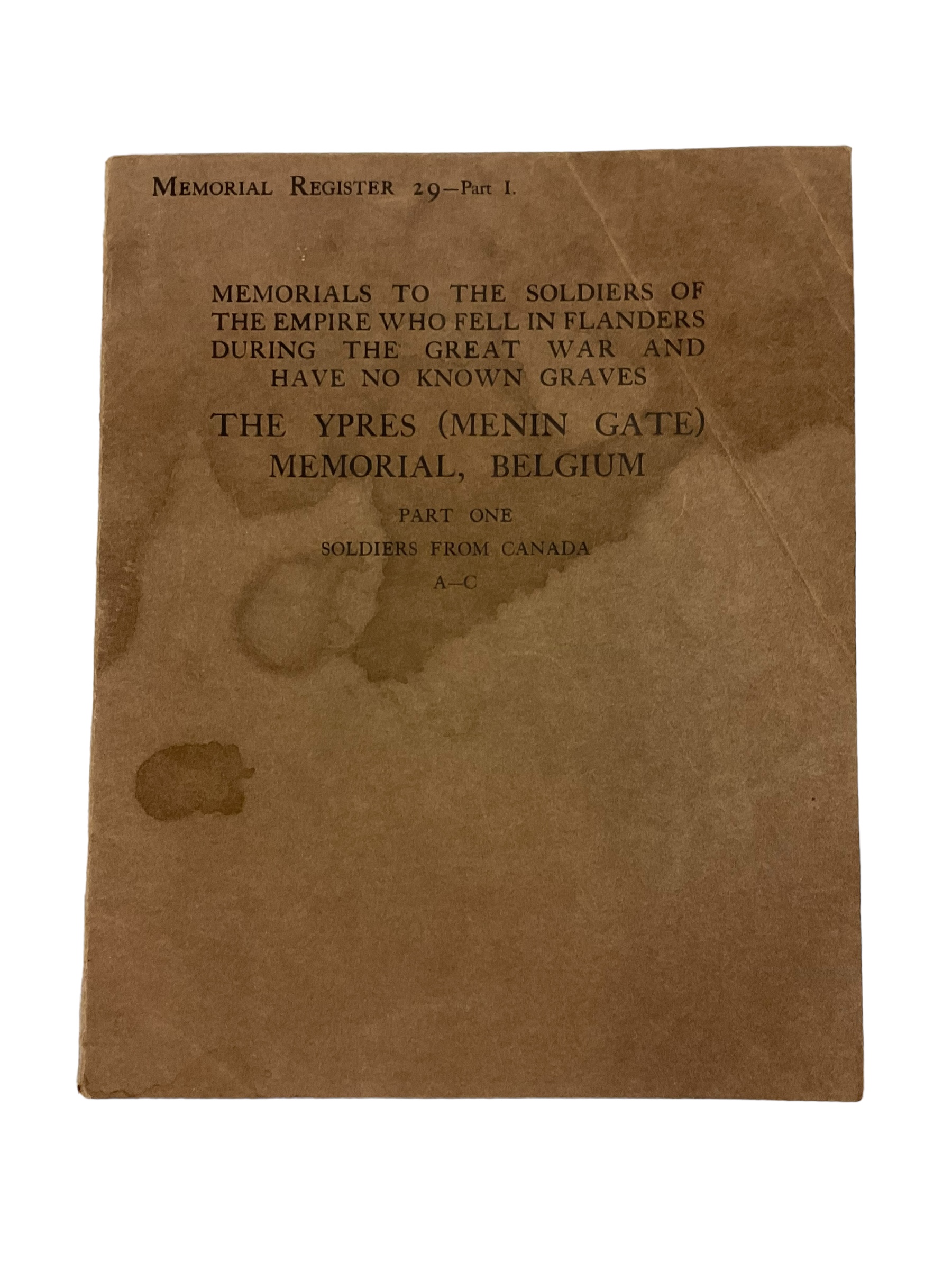 WW1 British BEF Memorial Register 29 Pt XXIX Ypres Menin Gate SC Reference Book