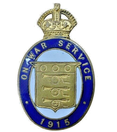 WW1 British BEF Ordnance Corps On War Service 1915 Lapel Badge Numbered 14584