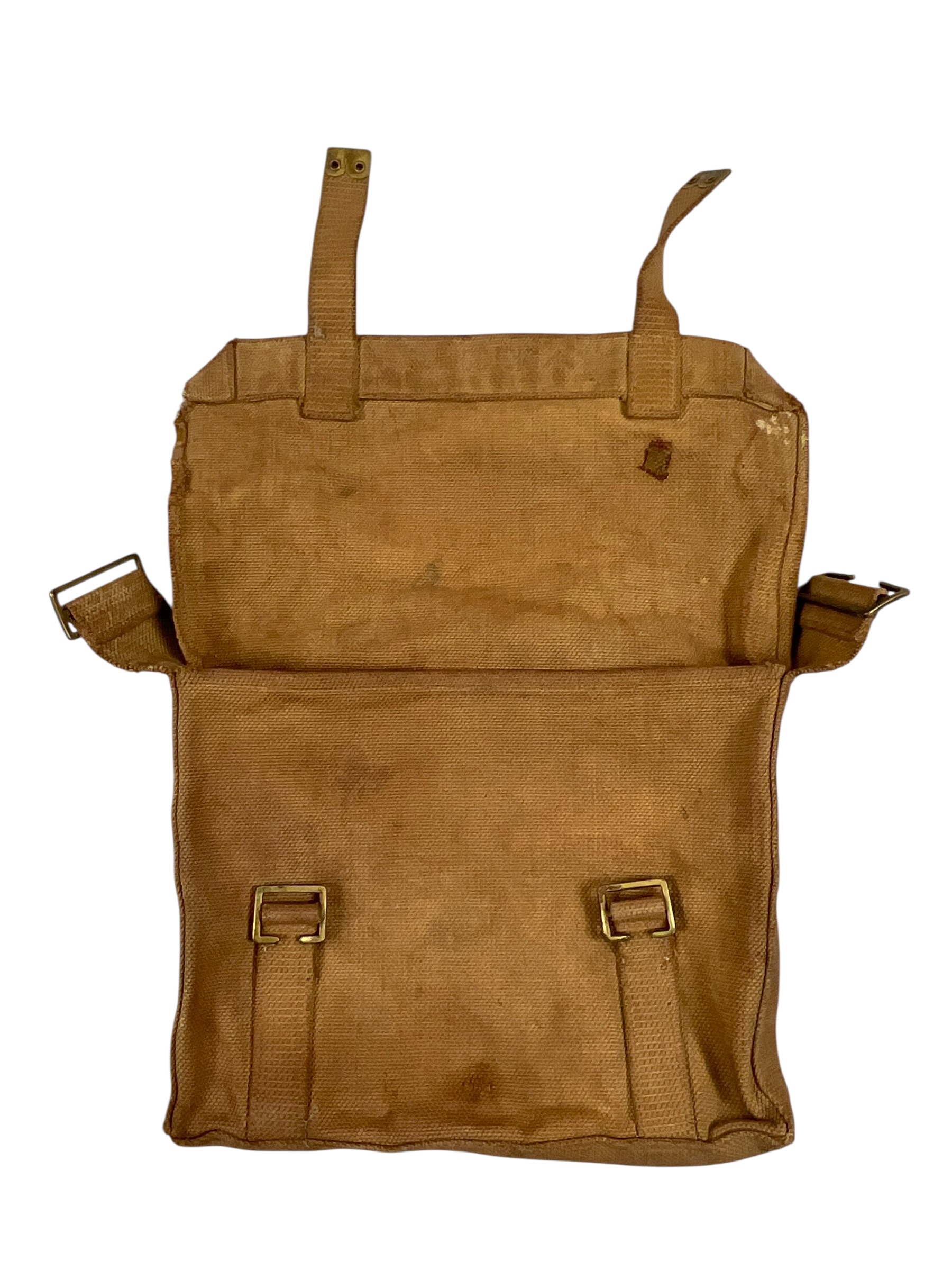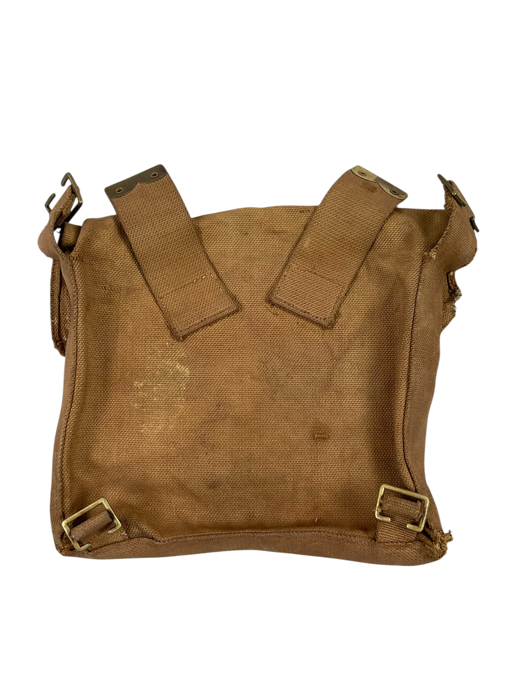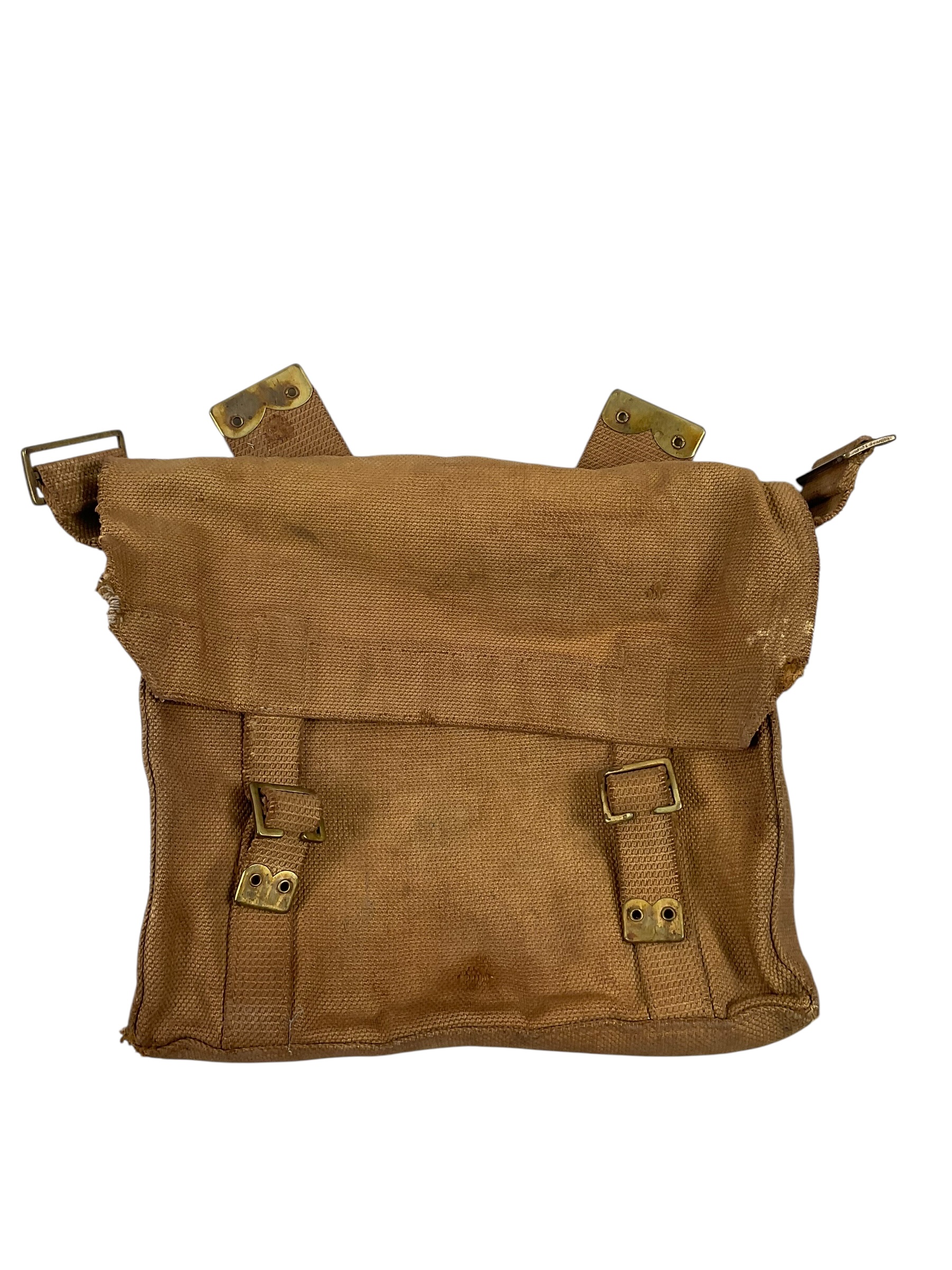 The WW1 British BEF P08 Small Pack was a standard-issue component of the 1908 Pattern Web Equipment (P08) used by British and Commonwealth forces during the First World War. Designed to be worn on the back or attached to the shoulder straps, the small pack provided essential carrying space for personal gear such as a mess tin, rations, cleaning kit, and spare clothing. Constructed from sturdy khaki webbing, the pack features a flap secured by two straps and buckles, with loops and attachment points for integration with other elements of the P08 system. The British Expeditionary Force (BEF) adopted this equipment in response to the changing requirements of modern warfare, emphasizing durability and functionality in the field. The P08 small pack played a key role in supporting the mobility and operational readiness of British infantry throughout the conflict. This item is an authentic example of the personal gear used by soldiers during the early 20th century.