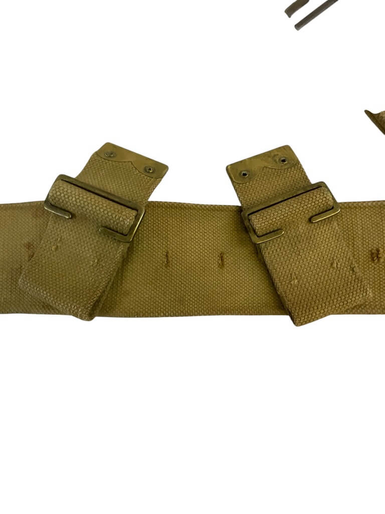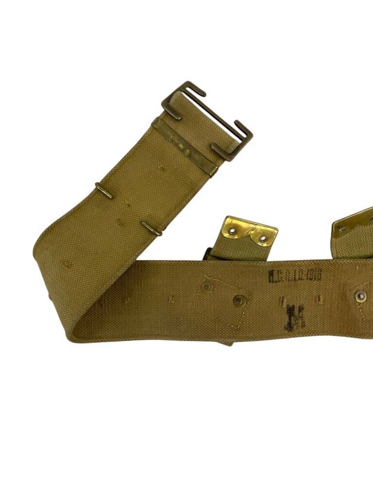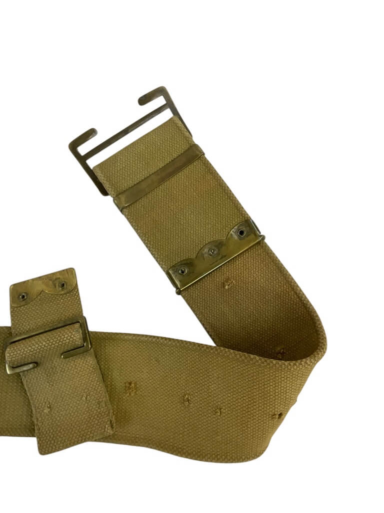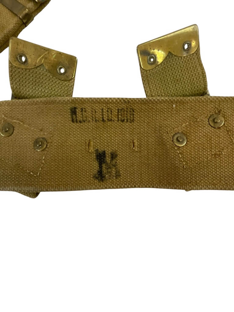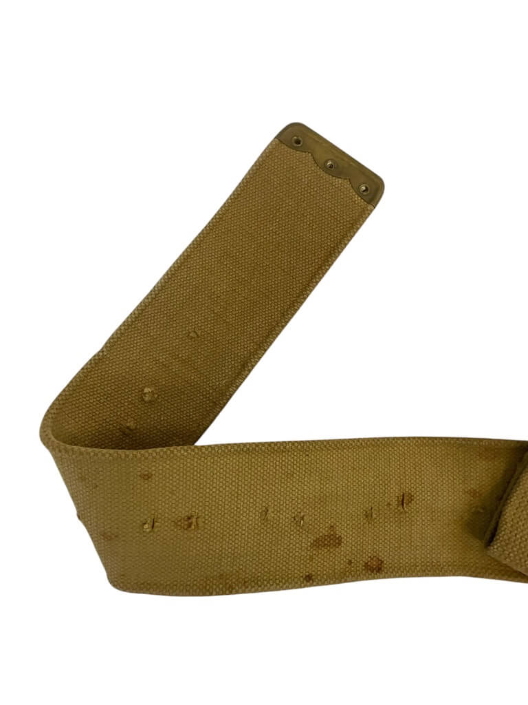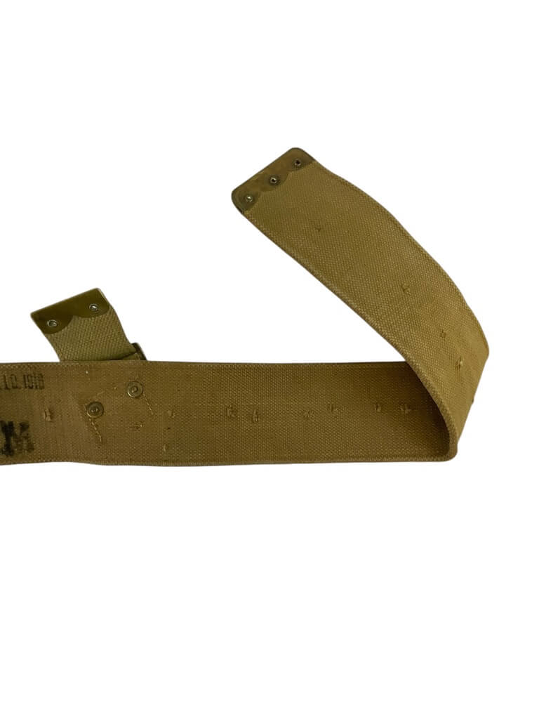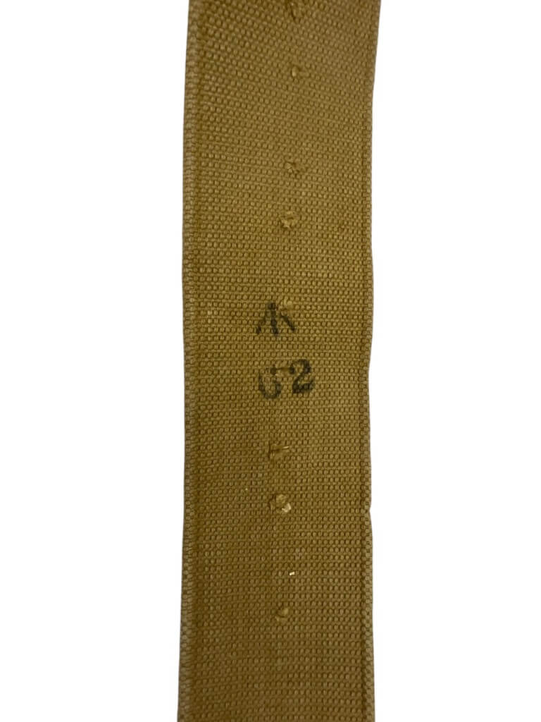 This product is a medium-sized WW1 British BEF P08 Web Belt, dated 1916. Known for its historical significance, it belonged to the British Expeditionary Force (BEF) during World War I. The P08 stands for Pattern 1908, indicating the year this design was introduced. The belt is made from robust, woven cotton webbing, providing durability and strength. Its khaki color reflects the typical military style of that period. The belt showcases an authentic metal buckle, making it adjustable for comfort. Notably, it carries a clear date stamp of 1916, confirming its origin and adding to its collectible value. This piece is more than just a belt; it’s a tangible piece of history, carrying stories of the brave soldiers who fought in the Great War. This belt would make a fantastic addition to any military memorabilia collection or for historical reenactments.