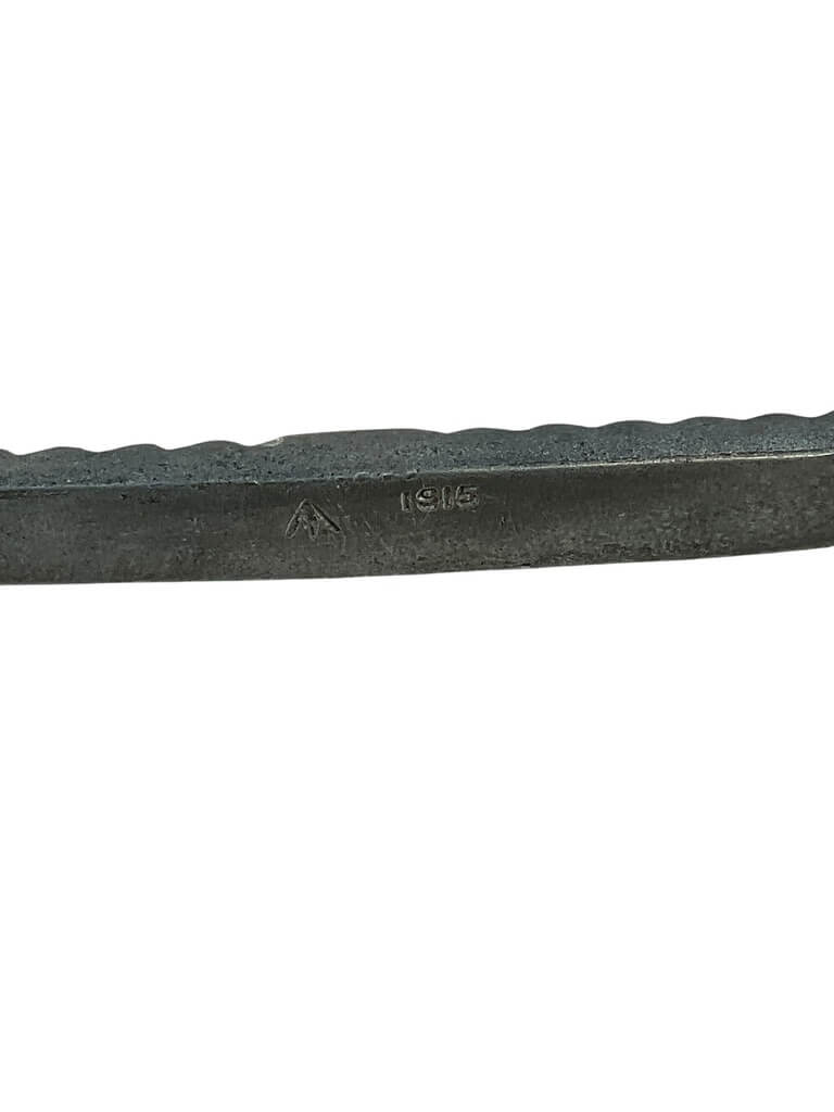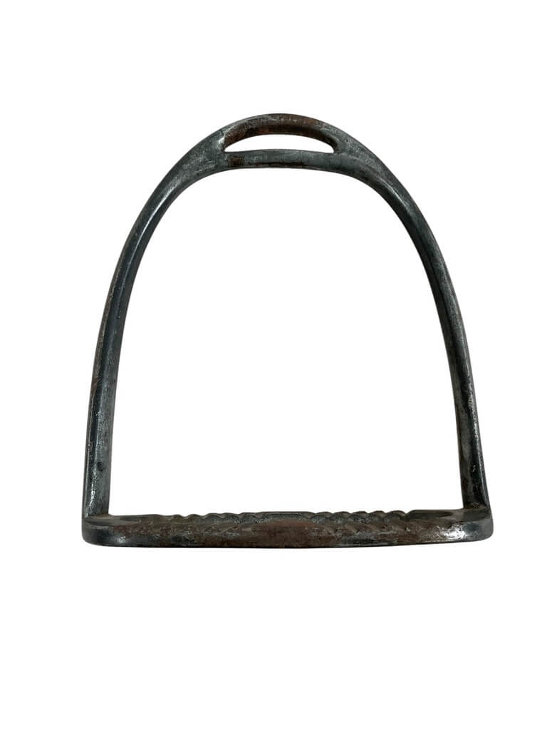 This item is a WW1 British BEF Single Stirrup, dated and authenticated from the year 1915. As an integral part of the British Expeditionary Force’s (BEF) mounted equipment, this stirrup is not just a mere artifact, but a symbol of history and valor. The ‘Broad Arrow’ marking, a classic British proof mark, signifies its authenticity and originality. This stirrup, crafted meticulously for the cavalry, speaks volumes about the time and precision of WW1 era craftsmanship. The metalwork, although worn, still echoes the resilience of the soldiers who rode into battle. As a collector’s item, it serves as a tangible link to Britain’s military past, offering a unique glimpse into the life of a WW1 British cavalryman. This single stirrup is an excellent addition to any collection of military memorabilia or for history enthusiasts who appreciate artifacts with a rich backstory.