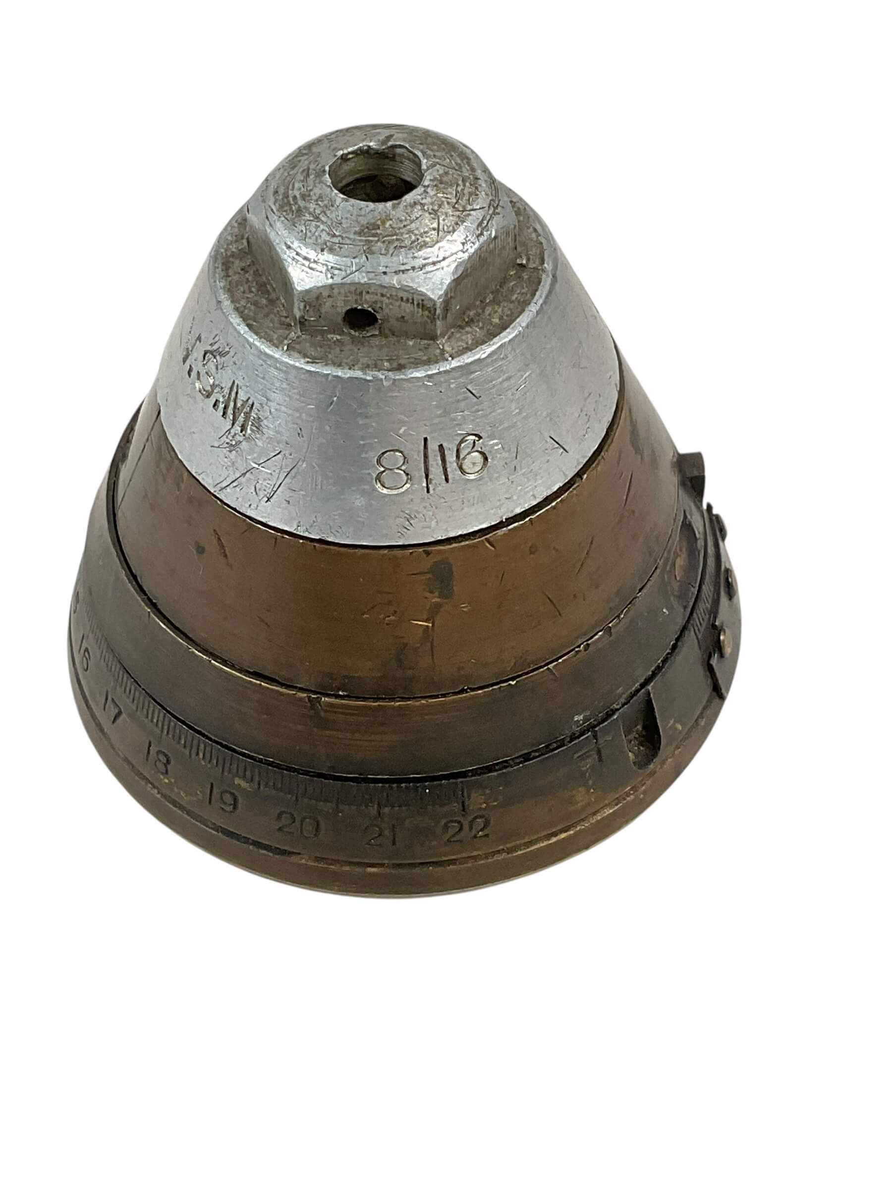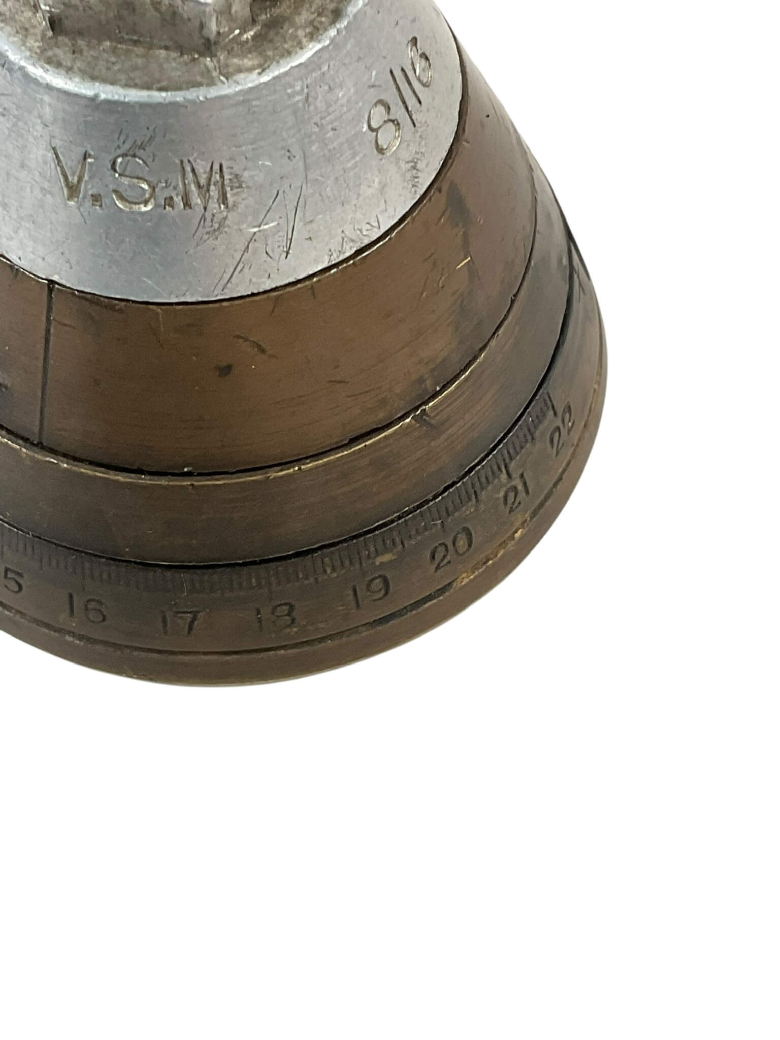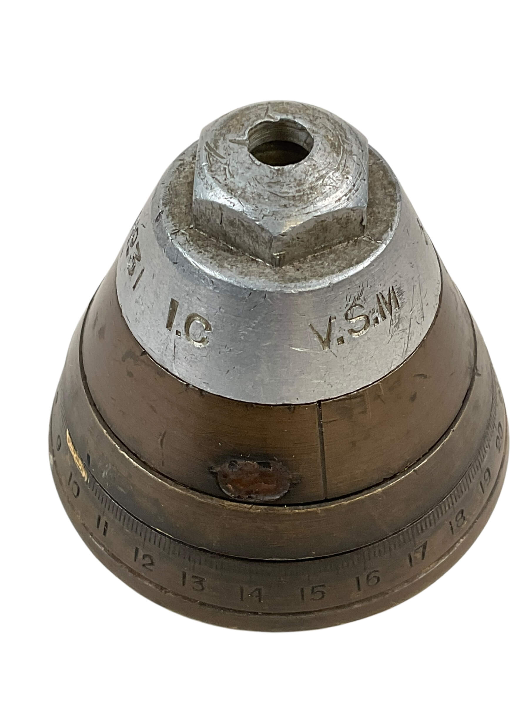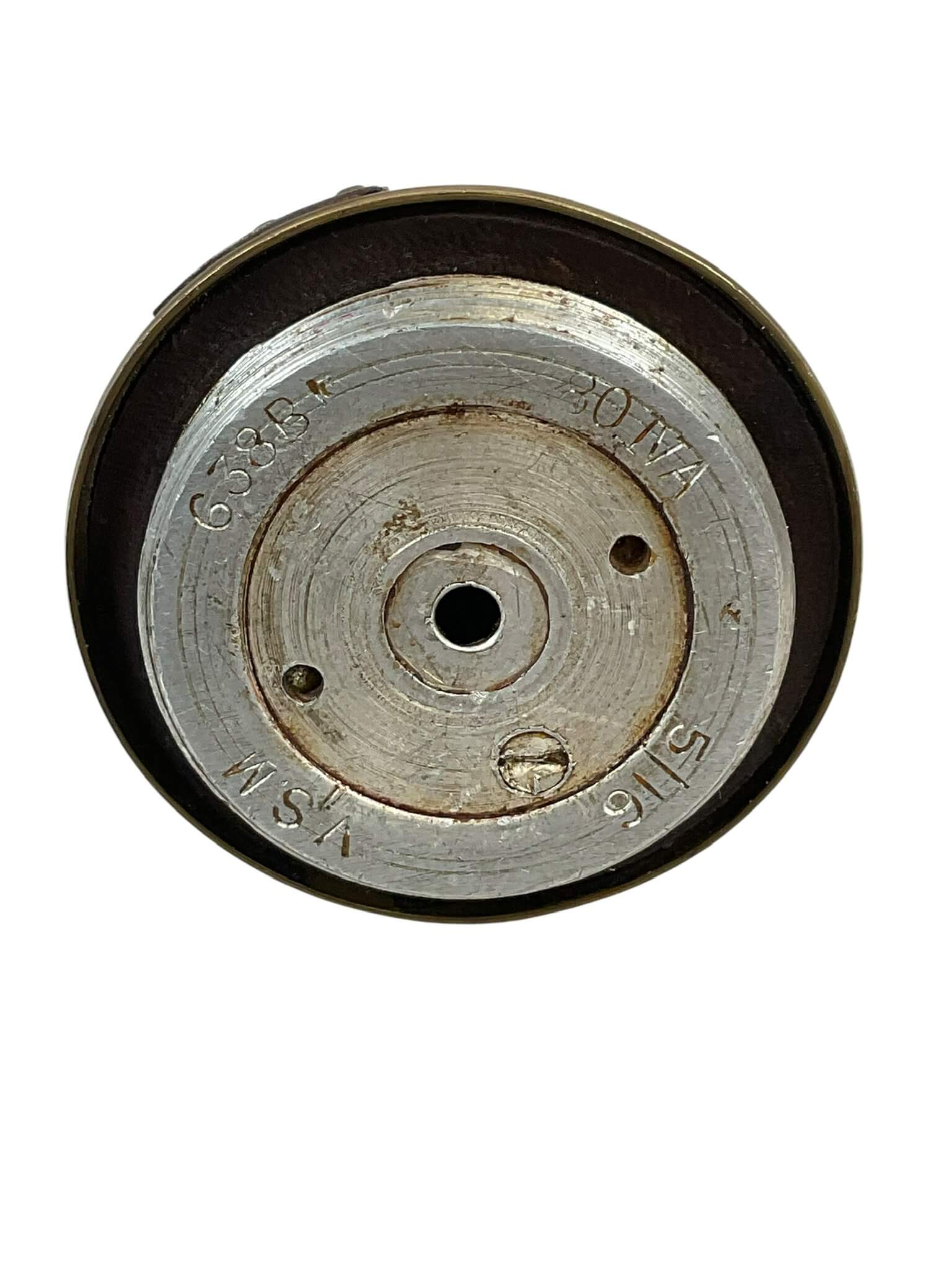 The WW1 British BEF Vickers Howitzer VSM Fuse, dated 1916 and offered here in INERT condition, is a piece of First World War artillery ordnance. This fuse was manufactured for use with Vickers howitzers, which were commonly deployed by the British Expeditionary Force (BEF) on the Western Front. Marked “VSM” (Vickers, Sons & Maxim), the fuse bears a clear 1916 date stamp, indicating its production during a significant phase of the conflict. Constructed from brass and steel, this example retains original manufacturing marks and thread details, characteristic of British munitions from this era. Being inert, there are no explosive components or hazardous materials remaining. Such fuses were a critical component for the timed detonation of artillery shells, enabling precise control over the munitions’ detonation point. This item represents original First World War military technology and provides insight into the evolution of artillery during the early 20th century.