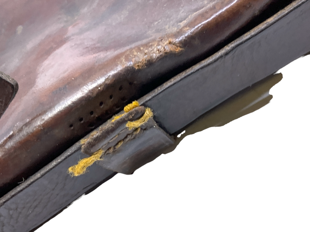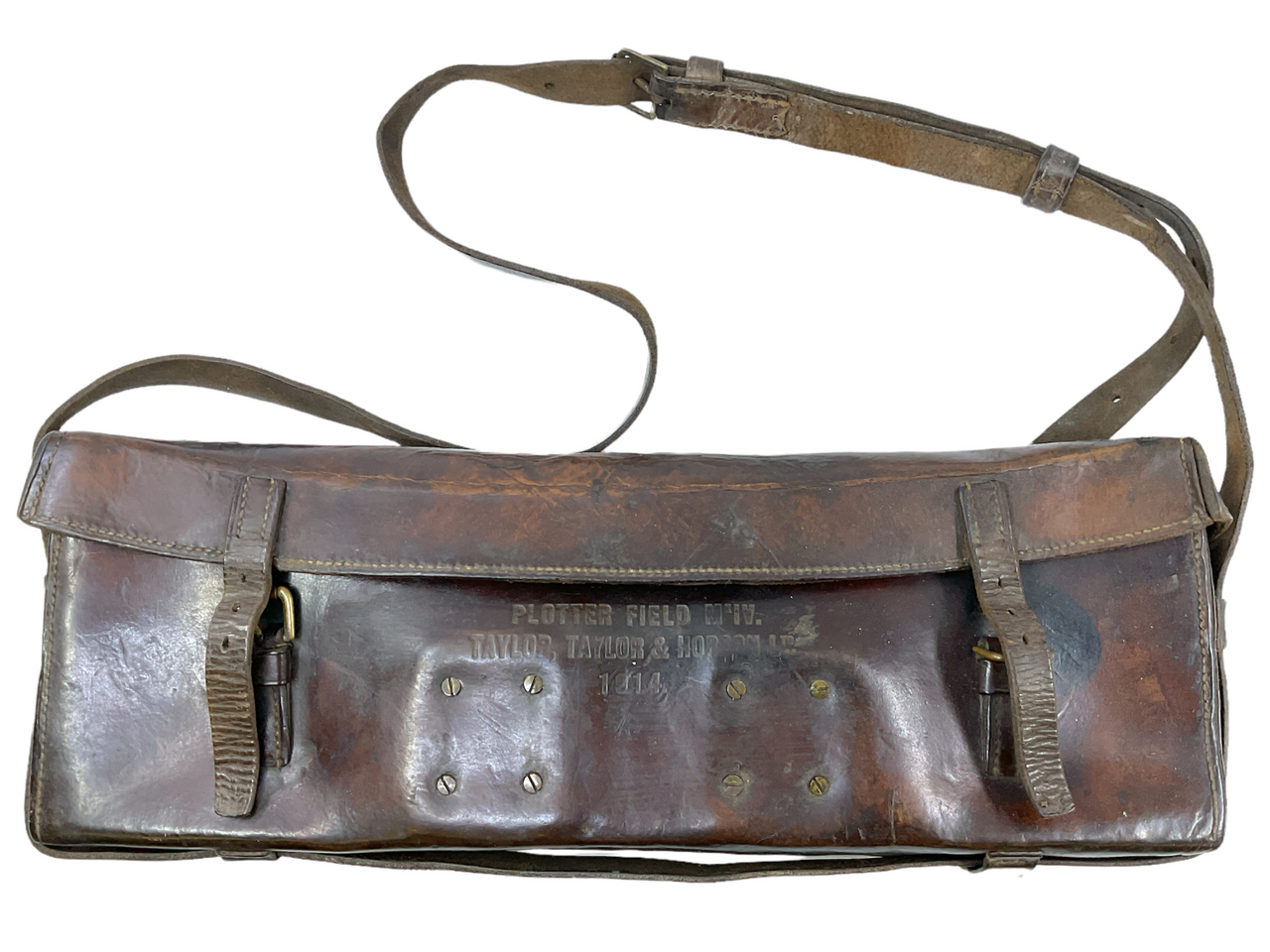 This unique historical artifact comprises a meticulously crafted Field Plotter Apparatus, dating back to the turbulent times of World War I in 1916. Affiliated with the British Expeditionary Force (BEF) and the Canadian Expeditionary Force (CEF), this apparatus was instrumental for military operations, providing precise plotting and mapping capabilities to the forces in the field. Constructed with durable materials to withstand the rigors of wartime use, this field plotter comes accompanied by an original leather carry pouch, showcasing the quality craftsmanship of the era. The leather pouch not only protected the apparatus but also facilitated easy transport across the challenging terrains. This rare ensemble serves as a poignant reminder of the strategic efforts and technological advancements employed during the Great War, making it a valuable piece for collectors and historians interested in military history and World War I artifacts.