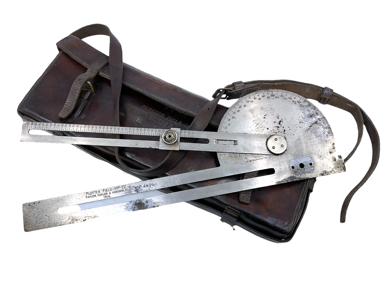 WW1 British Canadian BEF CEF Field Plotter Apparatus & Leather Carry Pouch 1916