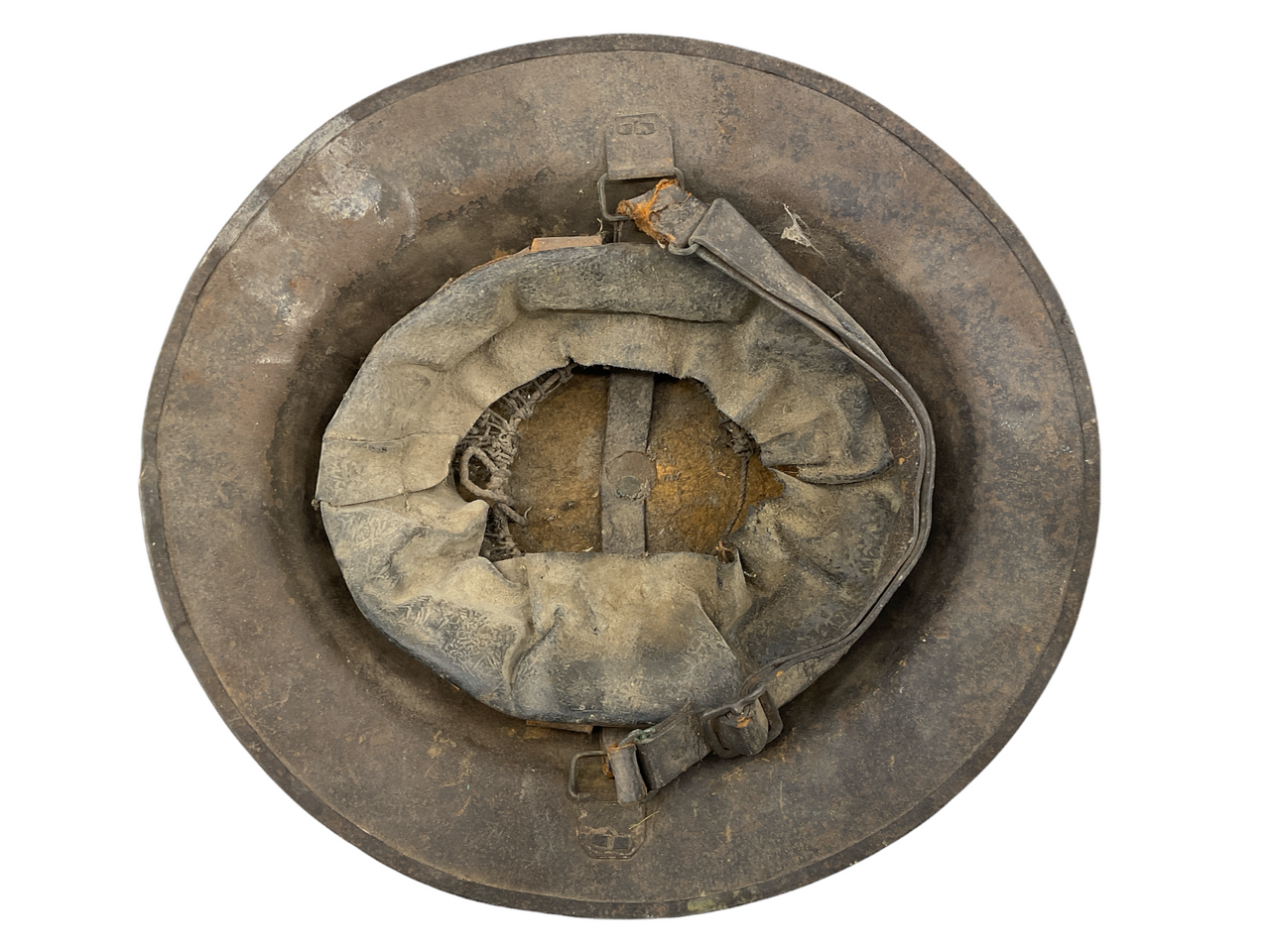 WW1 British Canadian BEF CEF Mk1 Combat Helmet w/ Liner & Chinstrap, pattern with no central rubber donut