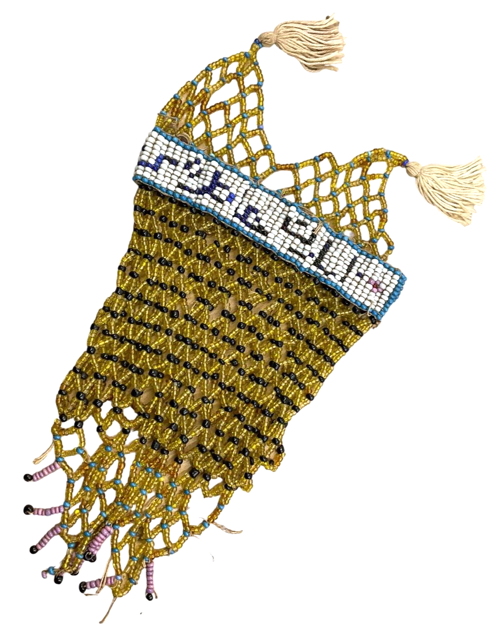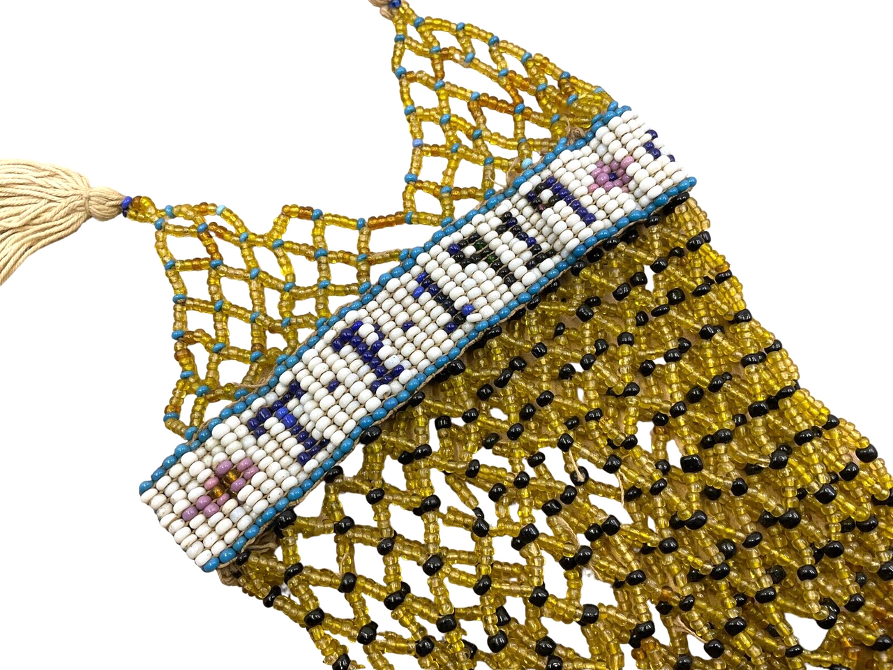 This remarkable WW1 British Canadian BEF Turkish POW Prisoner Beadwork Purse is a unique piece of history, meticulously crafted by a prisoner of war during World War I. Measuring approximately 11 inches by 5 inches, the purse showcases the intricate beadwork and artistry that was a common pastime among POWs. Each bead is carefully threaded to create a stunning pattern, reflecting the resilience and creativity of its maker under challenging circumstances. The purse not only serves as a functional accessory but also as a poignant artifact from a tumultuous time, symbolizing the intersection of different cultures and the endurance of the human spirit. Ideal for collectors of military memorabilia, this beadwork purse is a tangible link to the personal stories and experiences of soldiers from the British Expeditionary Force (BEF) and their time in Turkish captivity.