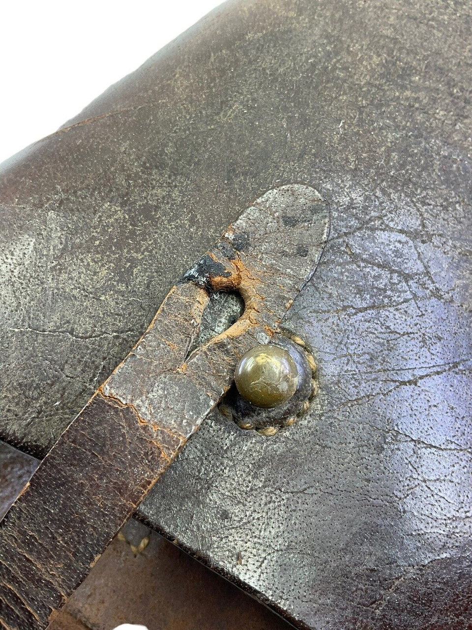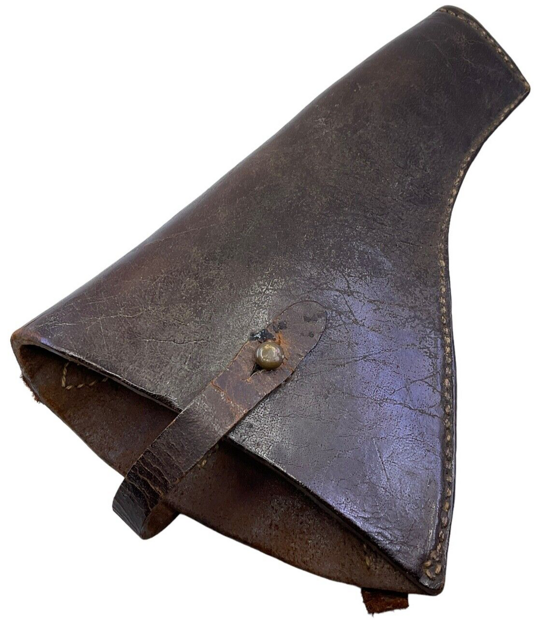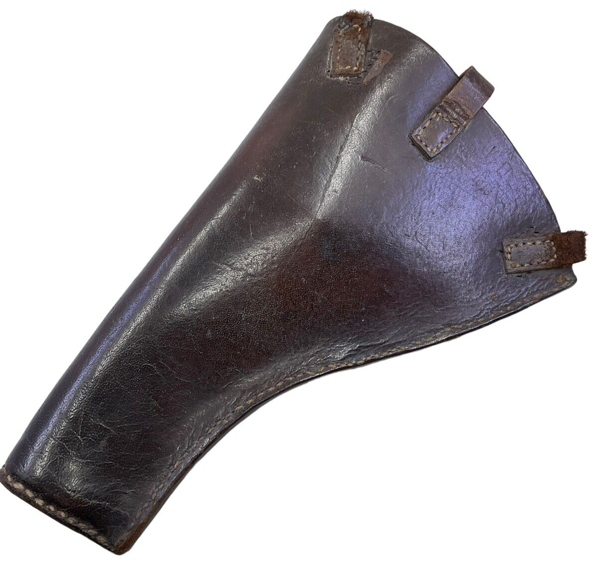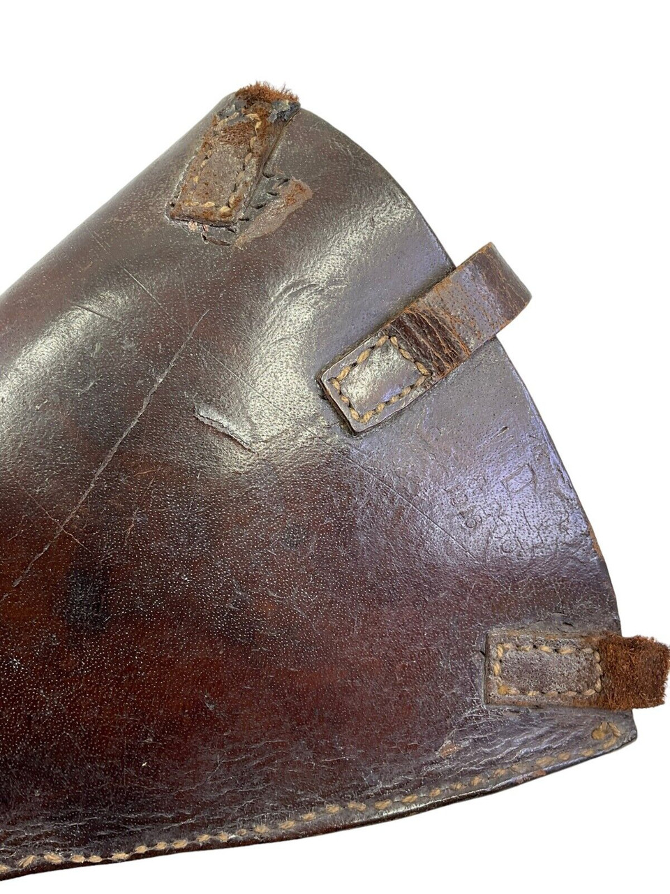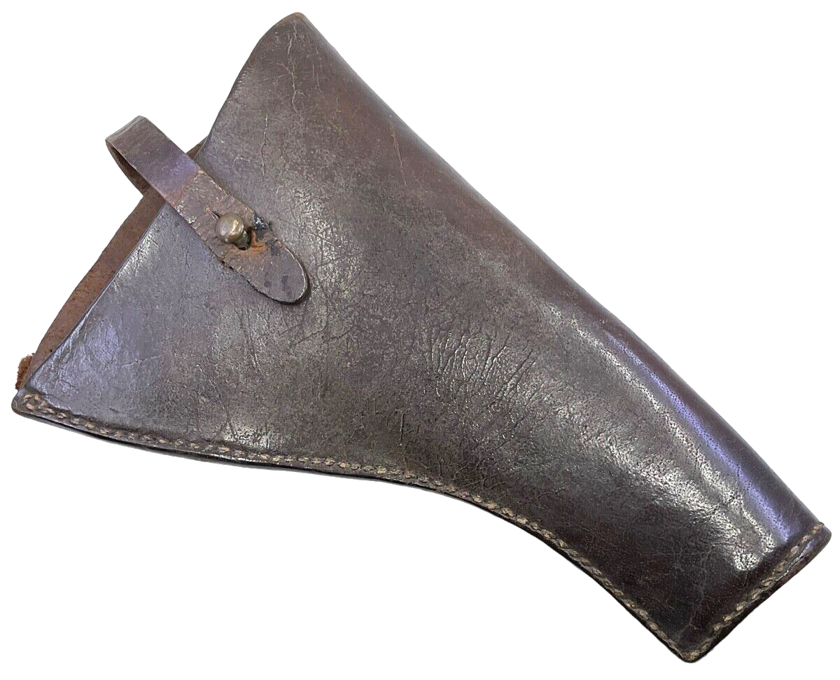 This historical artifact is a World War I British Canadian CEF (Canadian Expeditionary Force) BEF (British Expeditionary Force) brown leather Sam Browne holster, dated 1916. Crafted with precision and durability, it bears the War Department (WD) mark, signifying its official military issuance. The Sam Browne holster is an iconic piece of military equipment, known for its robust design and functionality, and was widely used by officers during the Great War. Made from high-quality leather, this holster would have been an essential part of an officer’s gear, providing a reliable means to carry a sidearm securely. Its historical significance is enhanced by the 1916 date, situating it firmly within the timeline of WWI. This holster not only represents a piece of military history but also serves as a testament to the craftsmanship and practical design of early 20th-century military equipment.