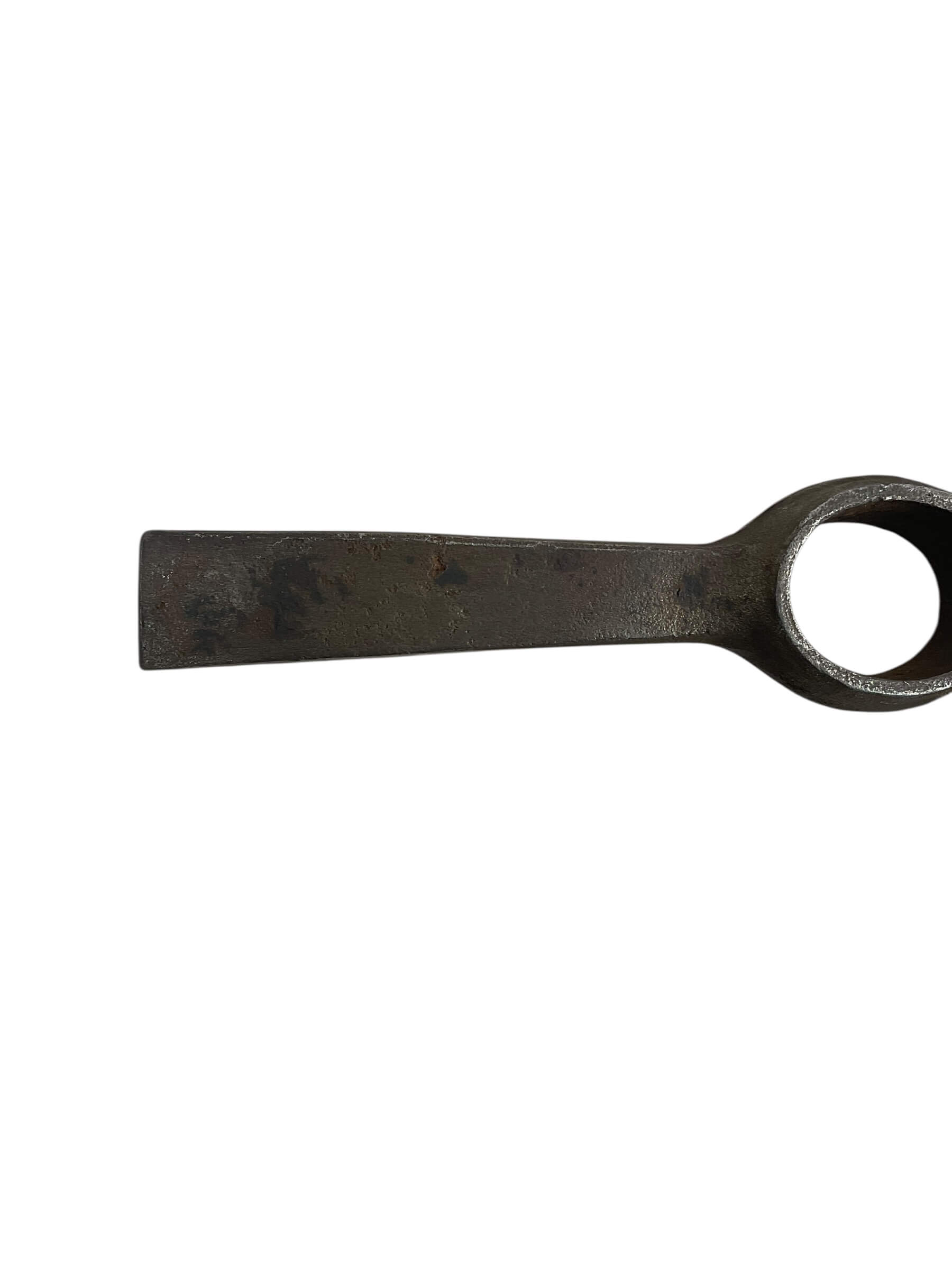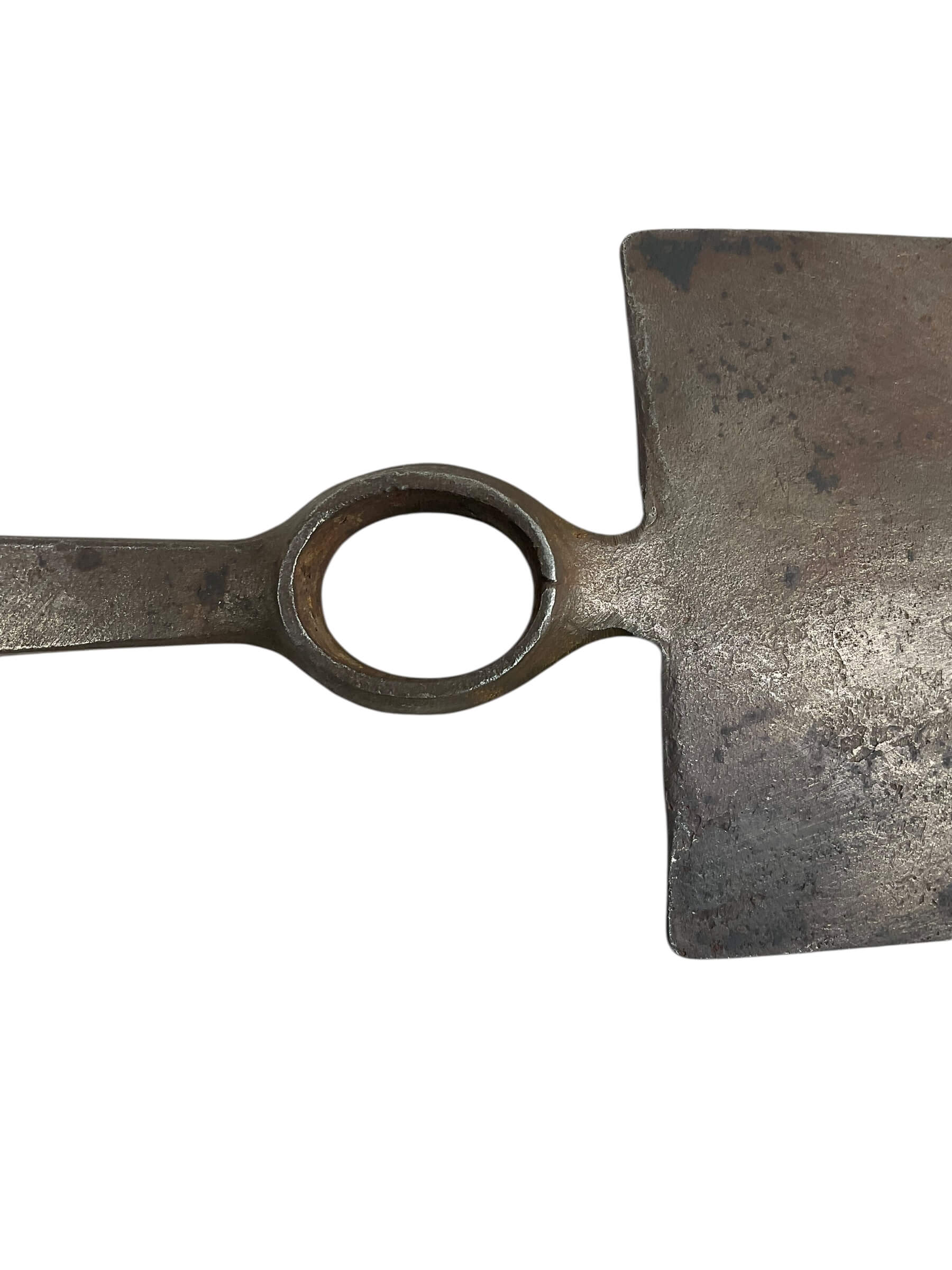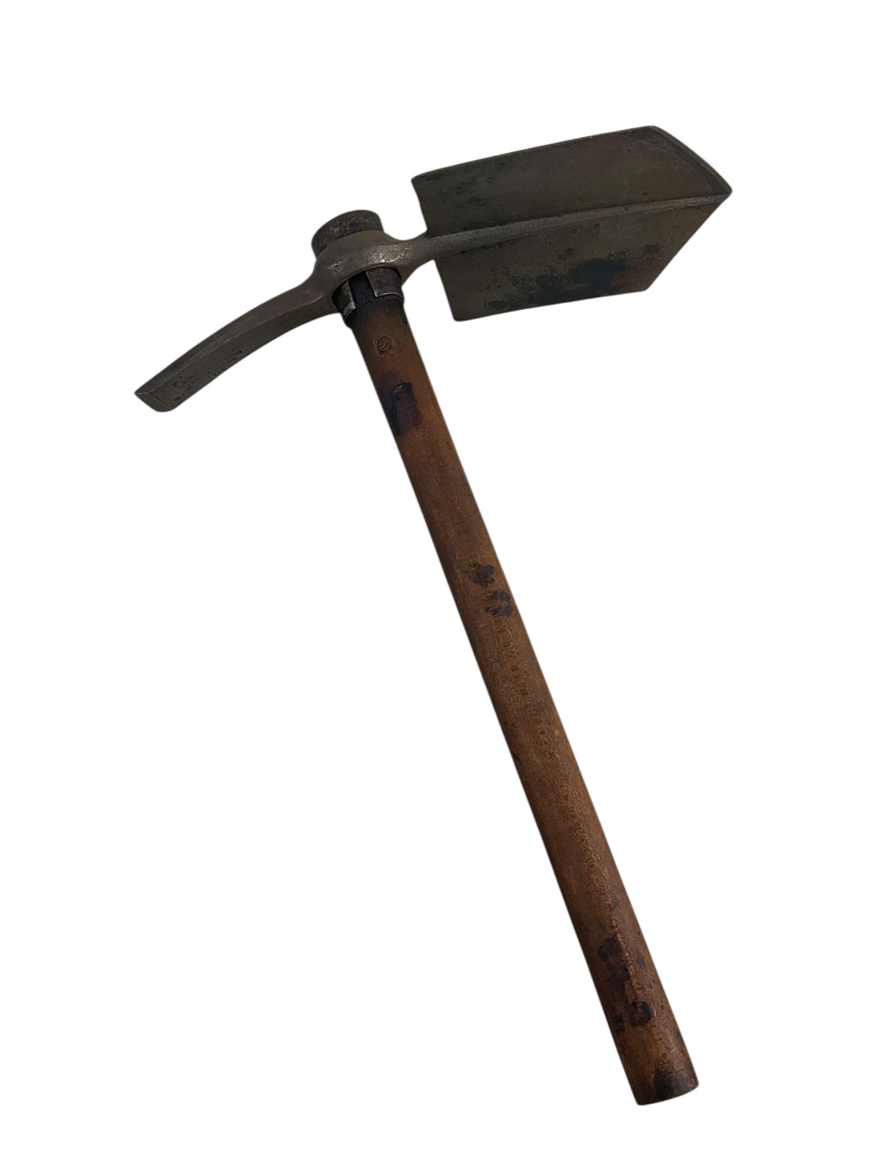 The WW1 British Canadian P08 Entrenching Tool Head and Handle is a military-grade digging implement. Used by the British and Canadian troops during World War 1, it comprises a metal head and wooden handle. Renowned for its robustness, this tool was essential for creating field fortifications.
