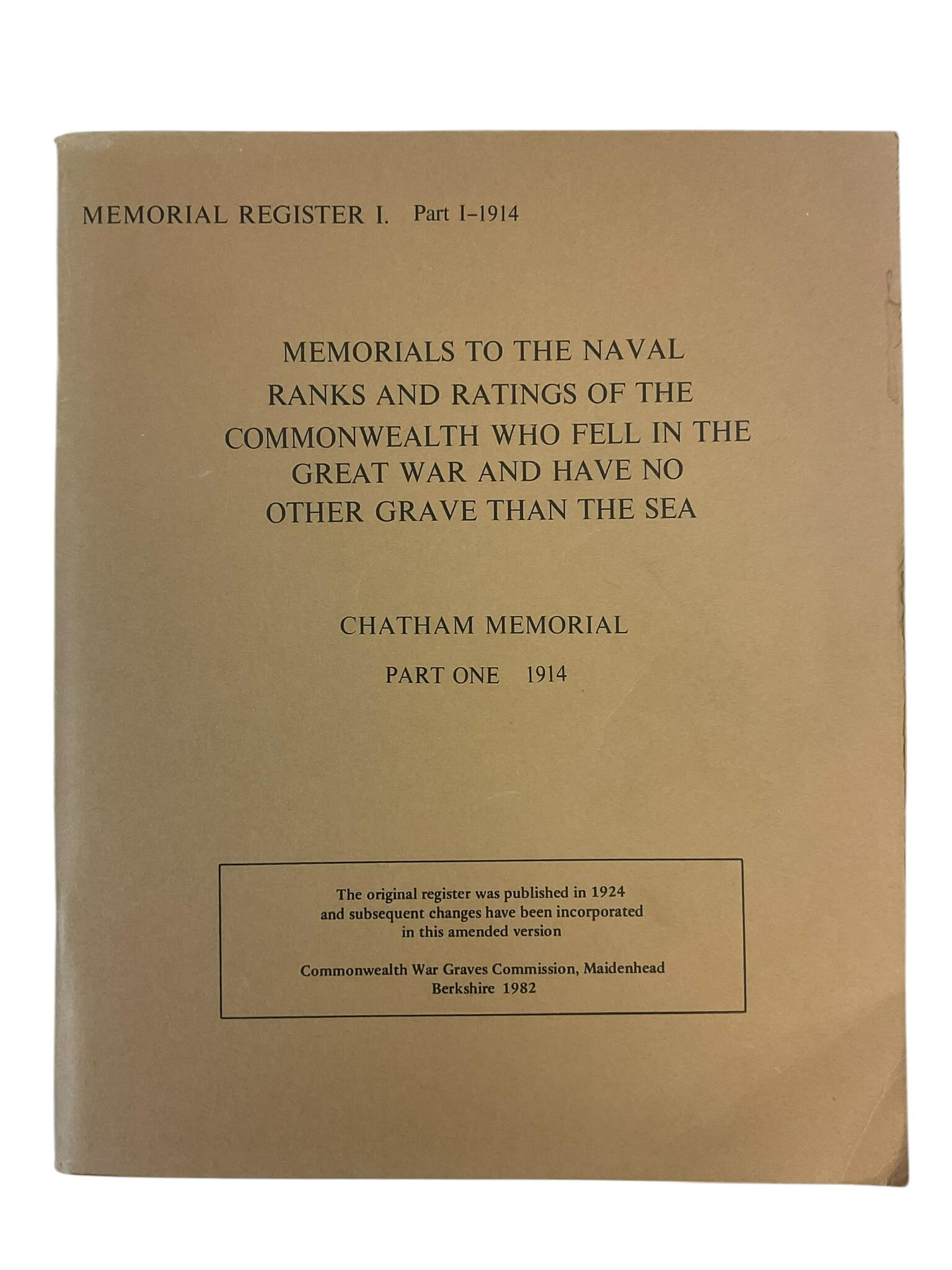 WW1 British Chatham Memorial Part 1 1914 Used Softcover Reference Book