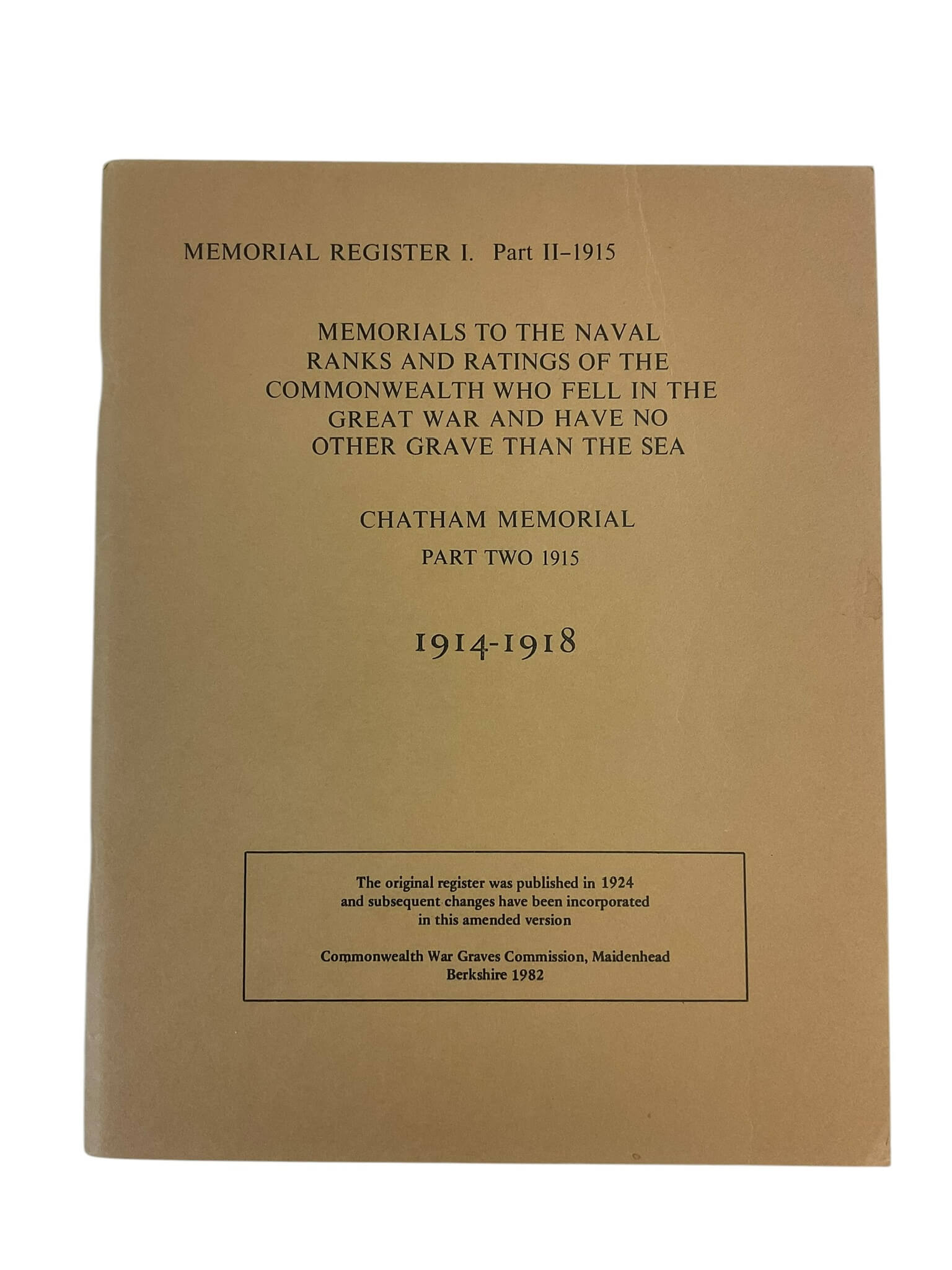 WW1 British Chatham Memorial Part 2 1915 Used Softcover Reference Book