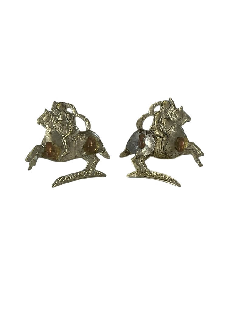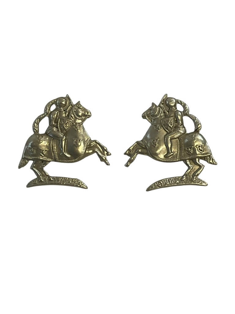 This product is a pair of WW1 British Fife and Forfar Yeomanry Collars Insignia, a valuable artifact for collectors and history enthusiasts. These insignias were worn by members of the Fife and Forfar Yeomanry, a British Army unit that played a significant role in WW1. Made from high-quality materials, the insignia pieces exhibit immense attention to detail, reflecting the rich history and valor of the unit. The pair includes two collar badges, each featuring the distinct emblem of the Fife and Forfar Yeomanry. These badges are not just collectible items, but also symbols of British military history. Their excellent condition makes them a remarkable find for anyone interested in WW1 memorabilia. The insignia pair, with its historical significance and intricate design, would make a great addition to any collection.